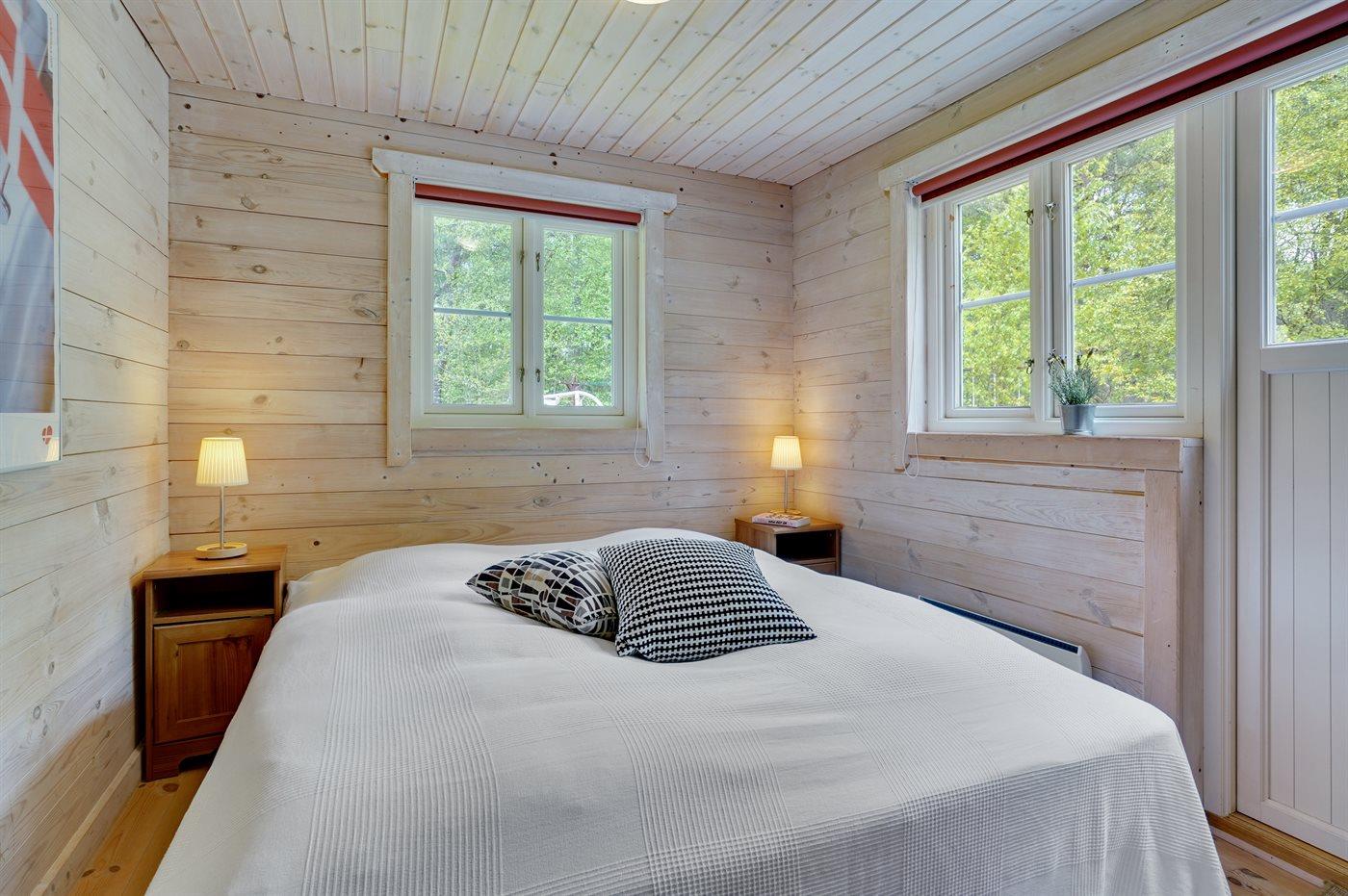 Der er i alt 3 soveværelser. Sovepladserne fordeler sig på: 6 sovepladser i dobbeltsenge. 2 sovepladser på madrasser. 2 af disse sovepladser befinder sig på husets hems. Derudover er der 1 stk. barneseng.