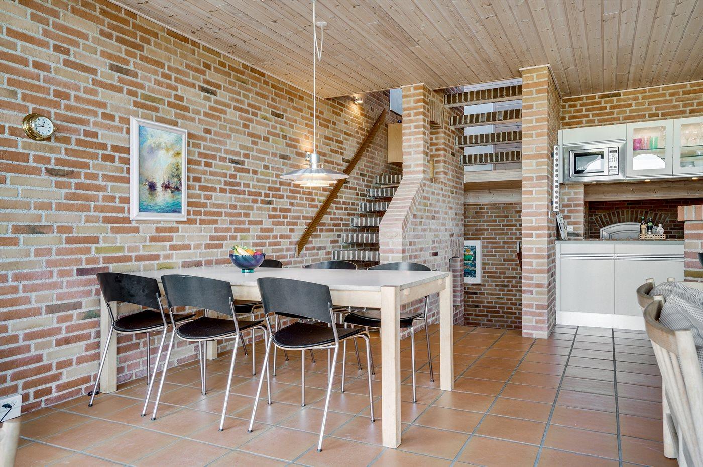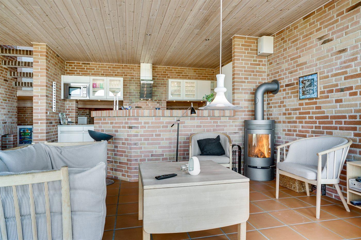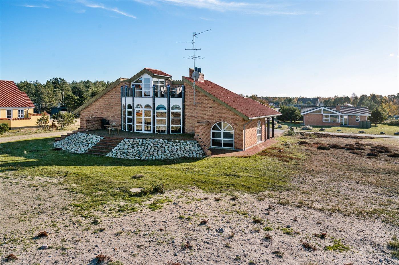 Ferieboligen er beliggende på en 800 m² stor naturgrund. Der er 120 m til havet. Nærmeste forretning er beliggende i en afstand af 300 m. På lune aftener sørger en udendørs pejs for hyggelig stemning. Parkering ved ferieboligen.
