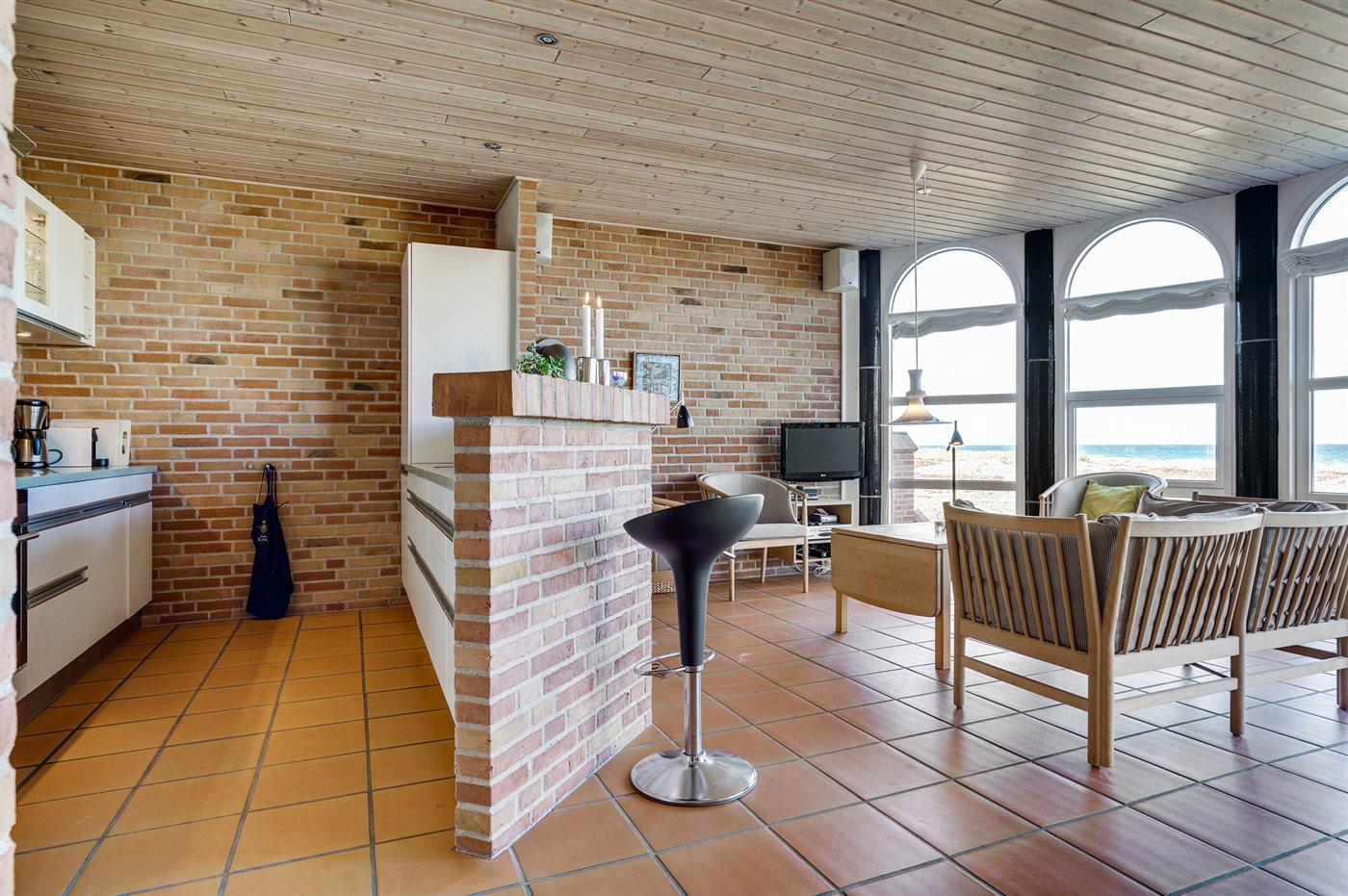 Køkkenet er udstyret med 1 køleskab. Der er 4 keramiske kogeplader, varmluftovn, mikrobølgeovn samt opvaskemaskine.
