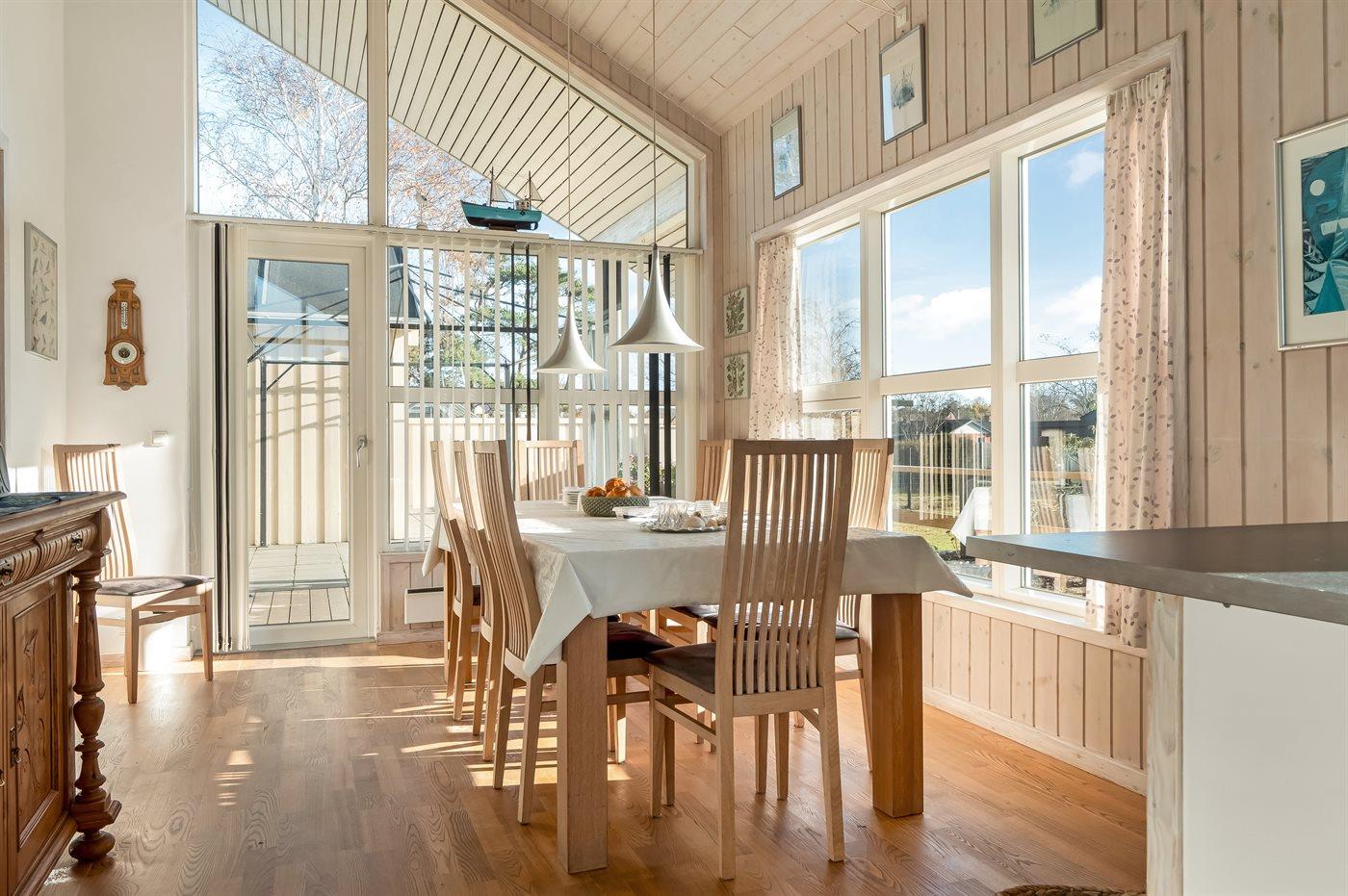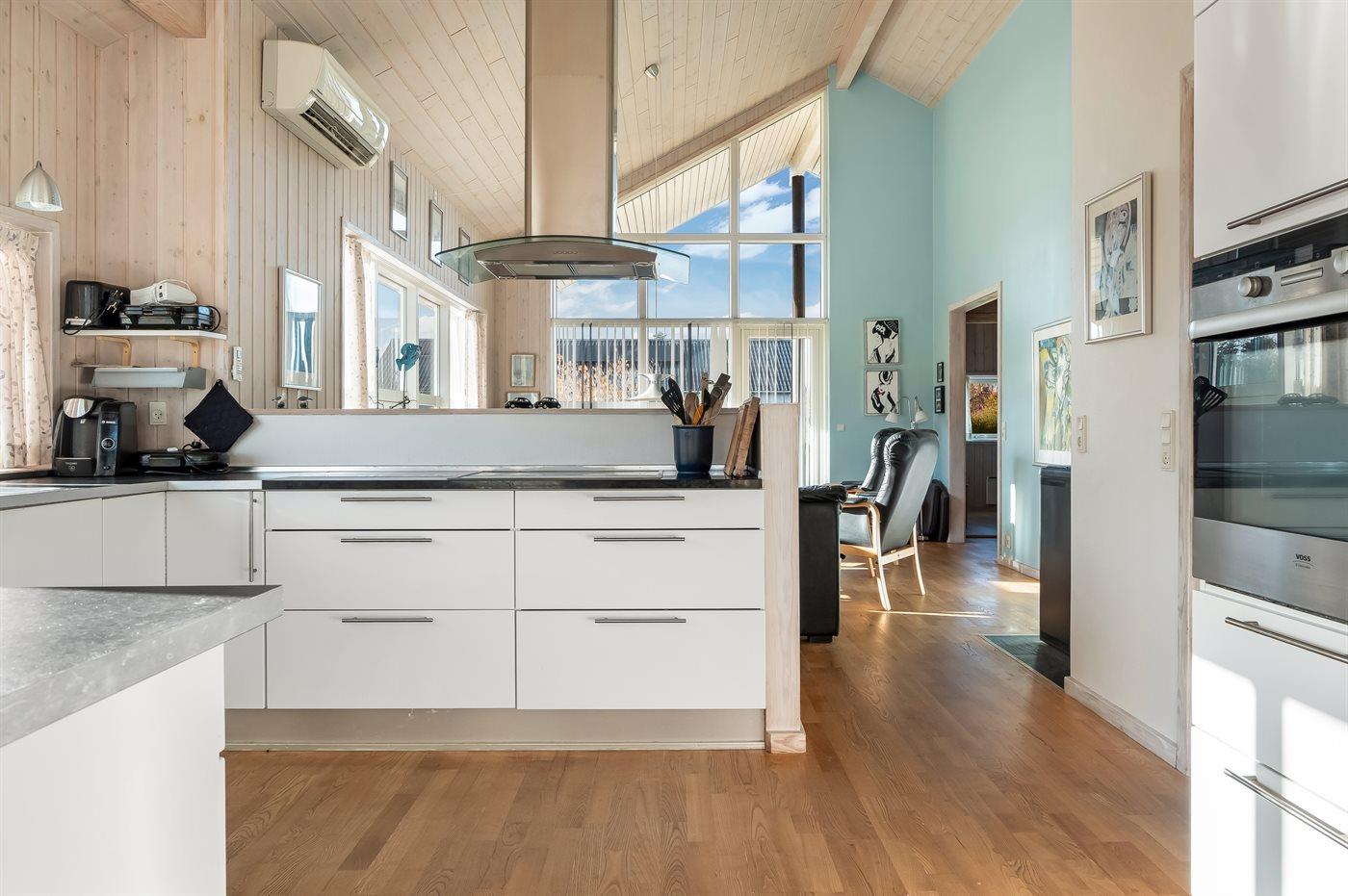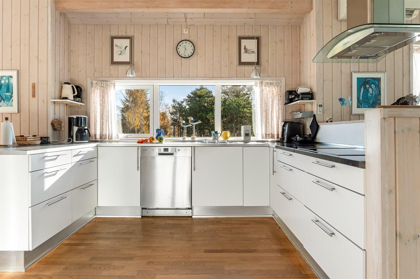 Køkkenet er udstyret med 1 køleskab. Der er 4 keramiske kogeplader, varmluftovn, mikrobølgeovn samt opvaskemaskine.