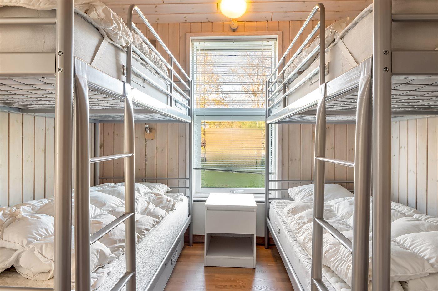 Der er i alt 4 soveværelser. Sovepladserne fordeler sig på: 4 sovepladser i dobbeltsenge. 8 sovepladser i køjesenge. Derudover er der 1 stk. barneseng.