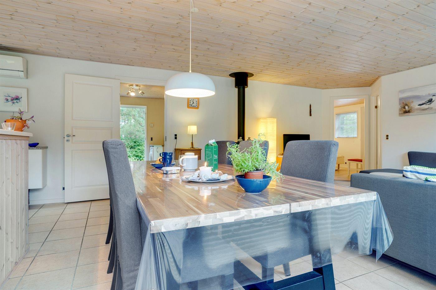 Sommerhuset egner sig til 6 personer. Ferieboligen er på 95 m² og er bygget i 2005. Det er tilladt at medbringe 1 husdyr. Ferieboligen er udstyret med energibesparende varmepumpe. Hele ferieboligen har gulvvarme. Ferieboligen har vaskemaskine. Frysekapacitet på 60 liter. Der er desuden brændeovn. Til de små er der 1 stk. barnestol.