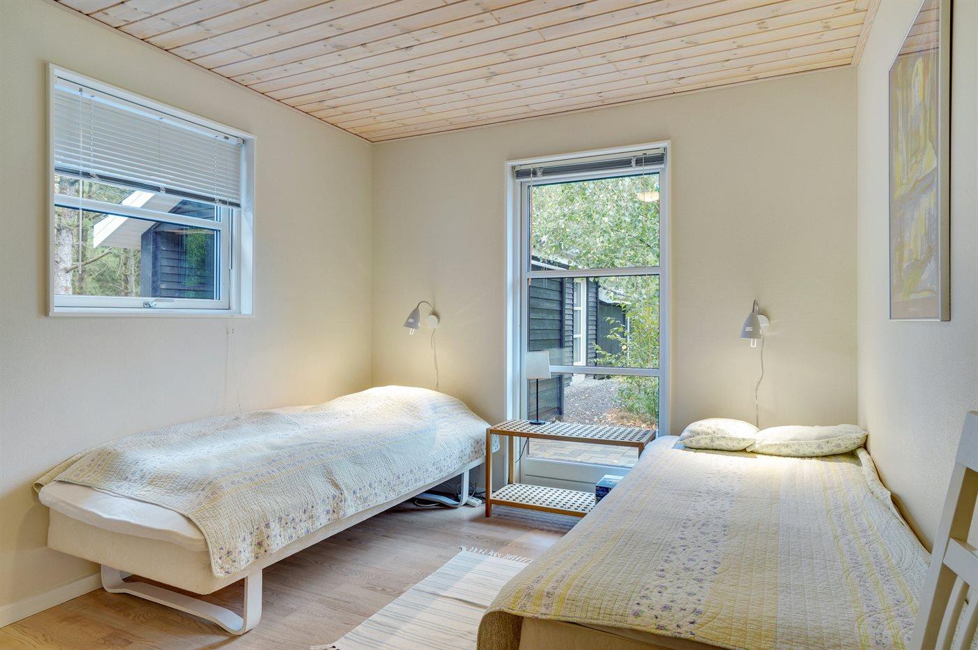 Der er i alt 3 soveværelser. Sovepladserne fordeler sig på: 2 sovepladser i dobbeltseng. 4 sovepladser i enkeltsenge.