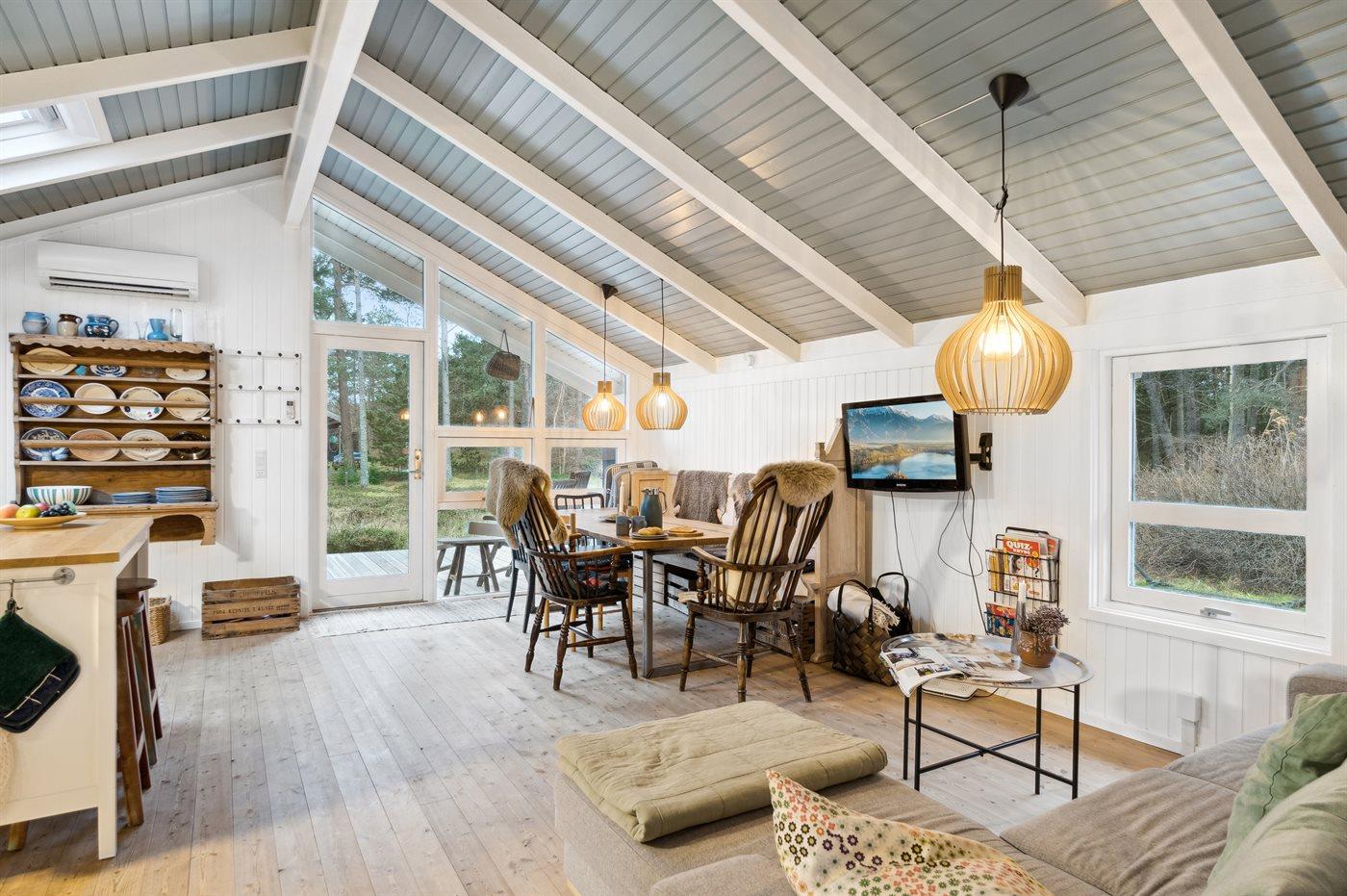 Et velholdt sommerhus med en smagfuld indretning i ny nordisk stil. Huset ligger på en solrig naturgrund med en dejlig stor terrasse.
