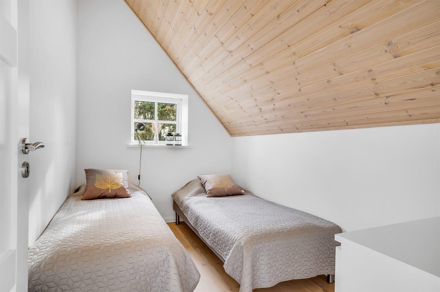 Der er i alt 3 soveværelser. Sovepladserne fordeler sig på: 4 sovepladser i dobbeltsenge. 2 sovepladser i enkeltsenge. 2 sovepladser i sovesofa (dobbelt). 2 af disse sovepladser befinder sig på husets hems.