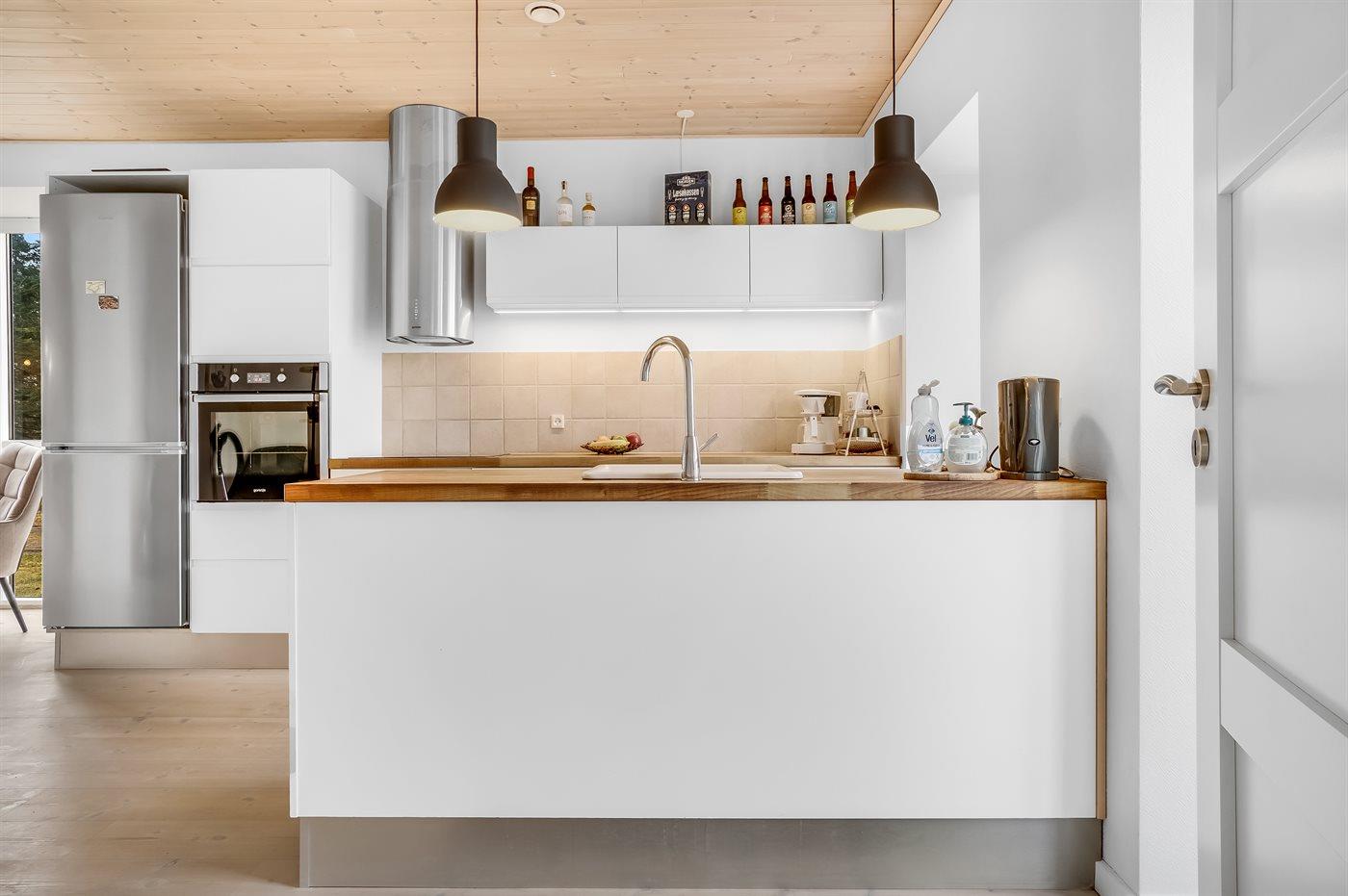 Køkkenet er udstyret med 1 køleskab. Der er 4 induktionskogeplader, varmluftovn samt opvaskemaskine.