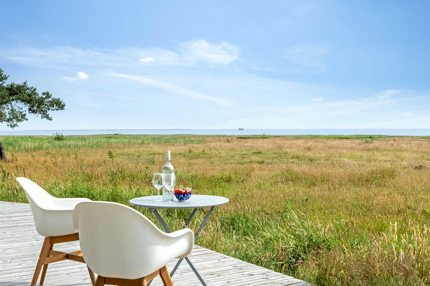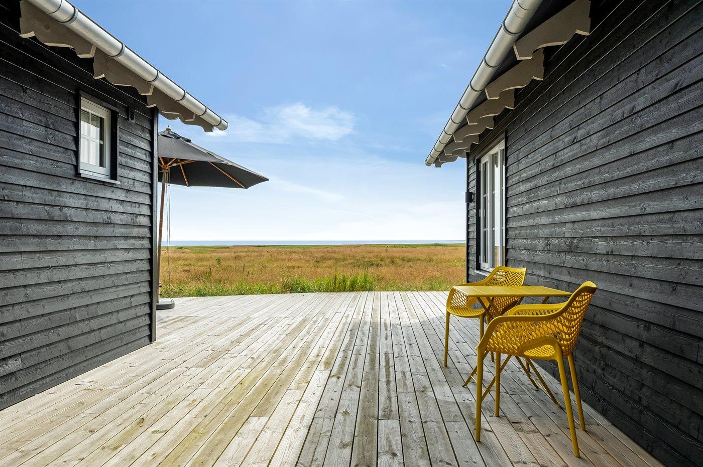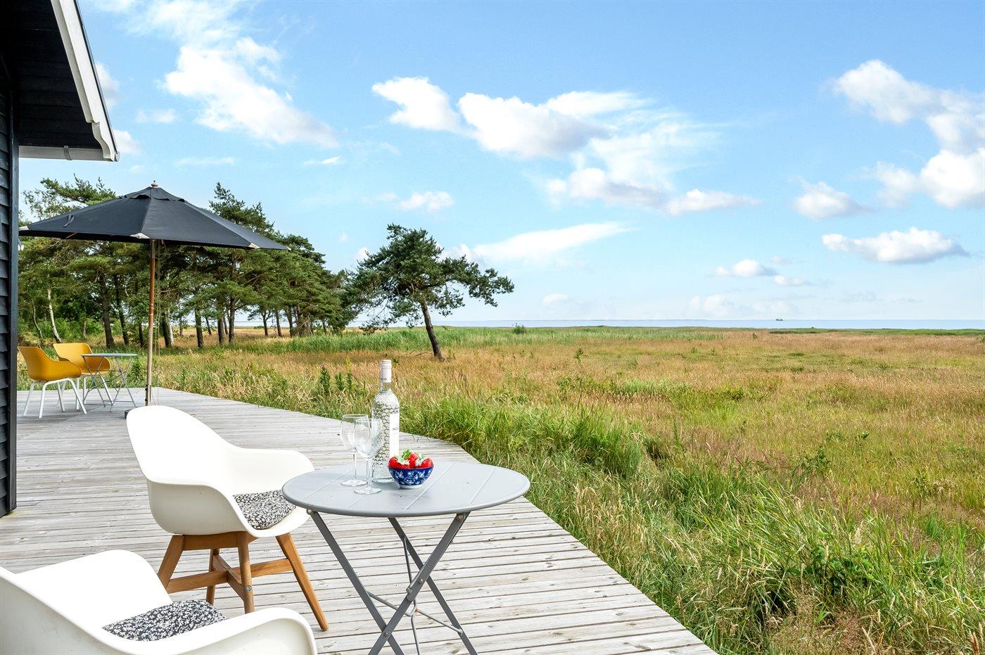 Nyd panoramisk havudsigt og naturoplevelser i et moderne sommerhus med stor terrasse og kørestolsadgang på Læsø.