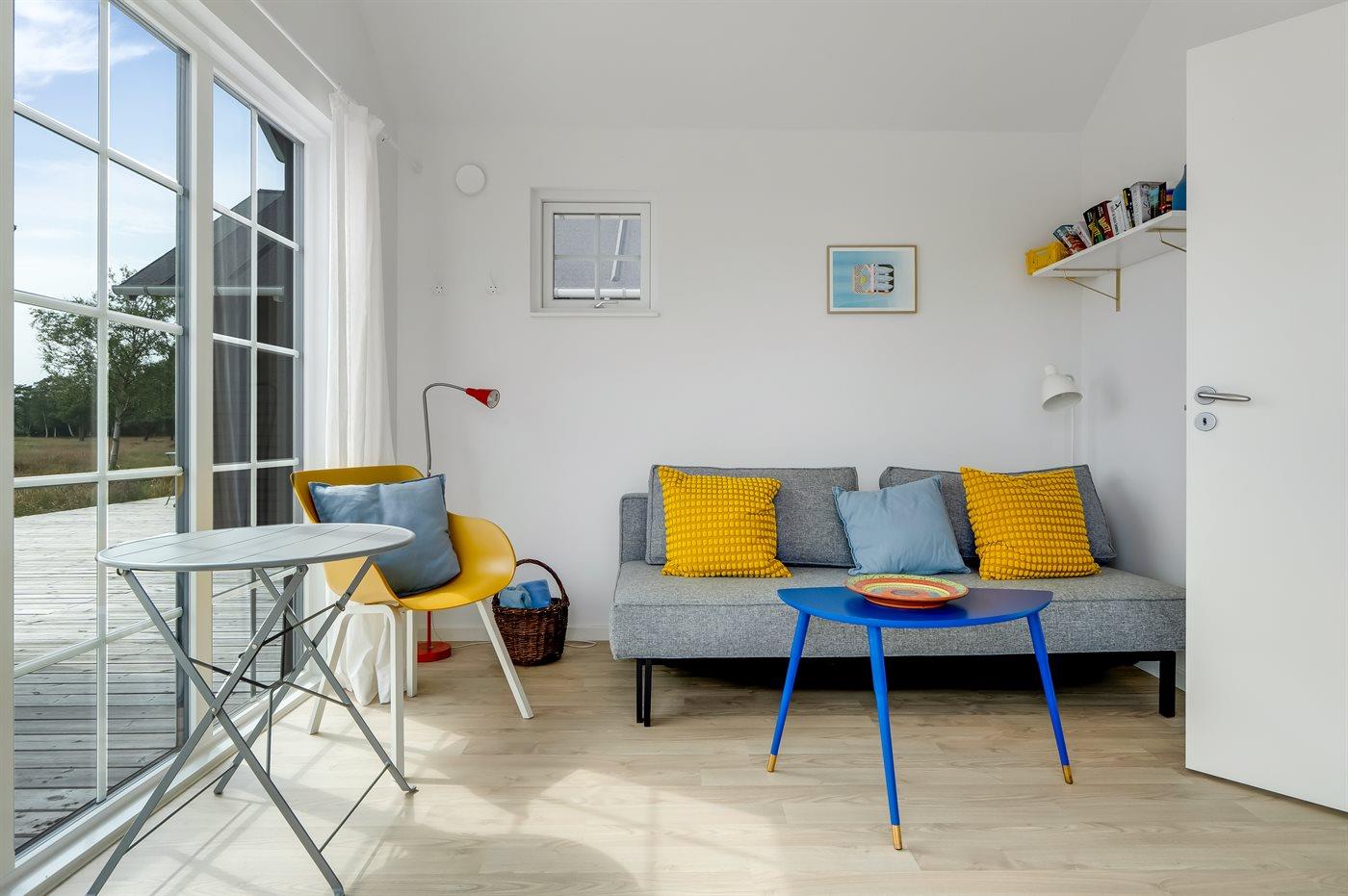 ANNEKSET består af et separat rum med toilet og gulvvarme, et tekøkken med køleskab samt to værelser. Det ene med køjeseng og det andet med sovesofa. Begge værelser er med TV og havudsigt.
