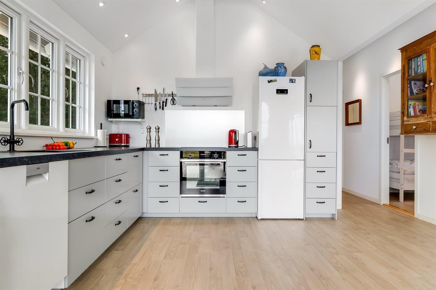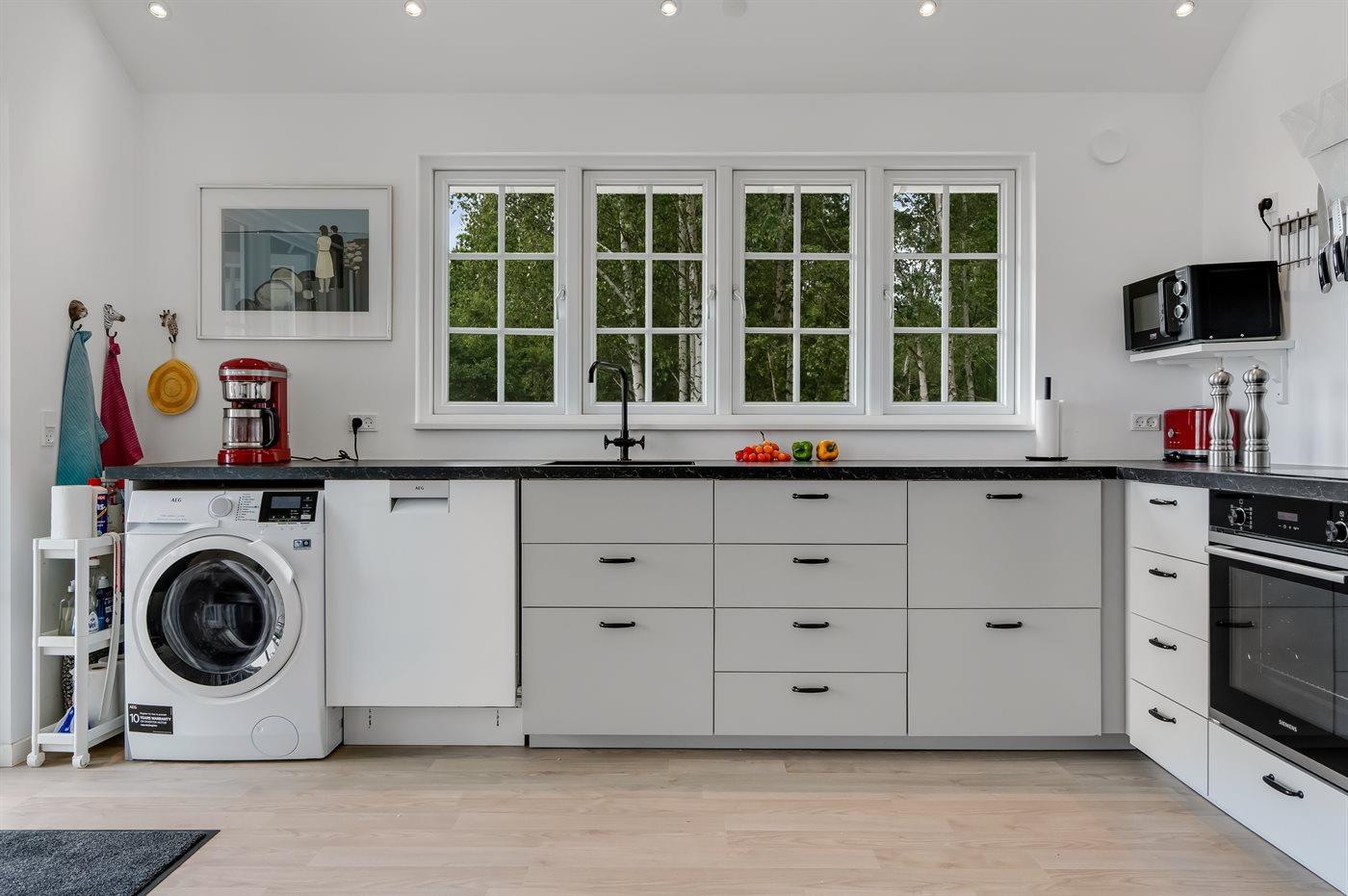 Køkkenet er stort og veludstyret og hvor alt fungerer. Her får man lyst til at tilberede måltider i sin ferie.