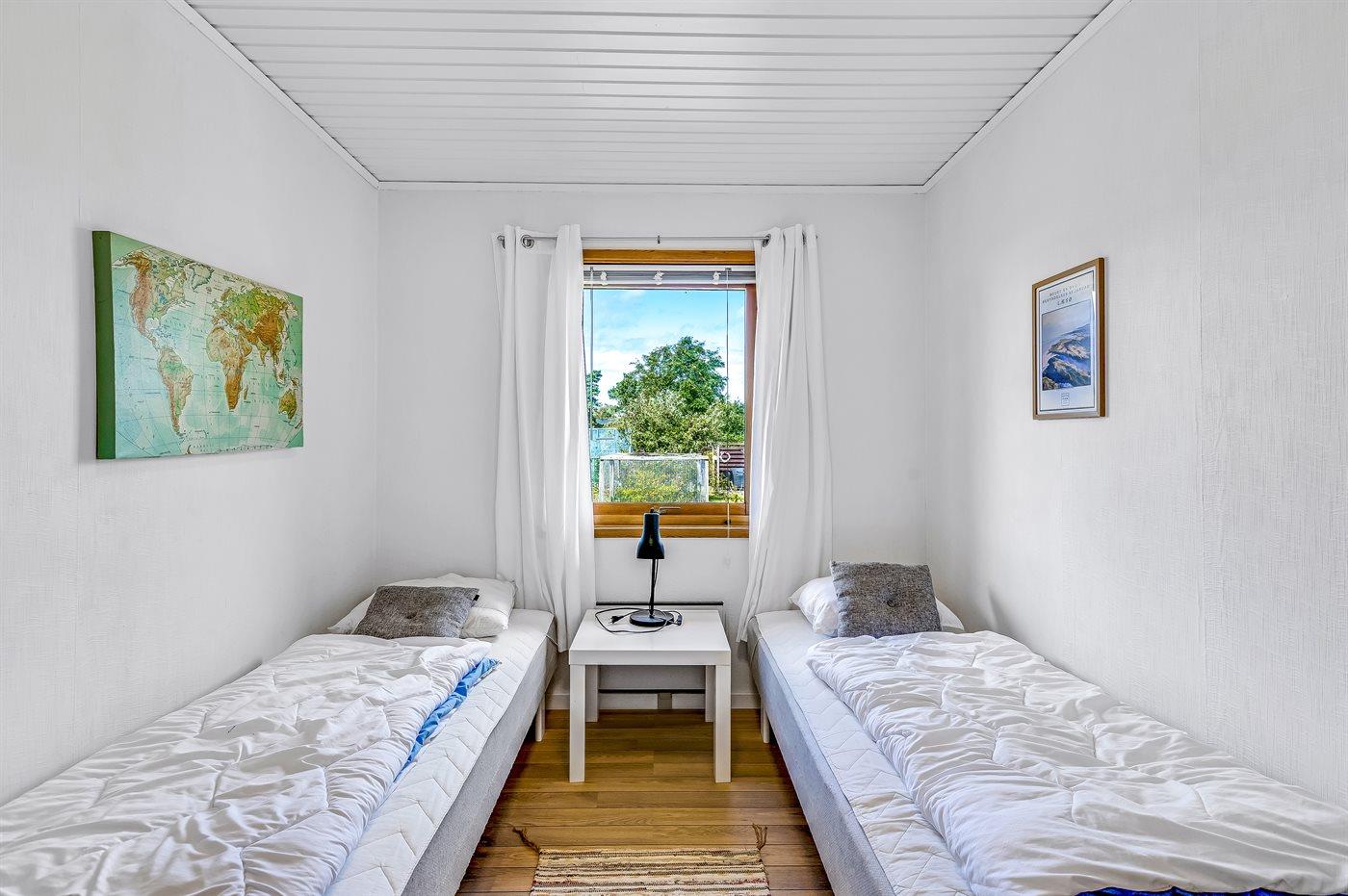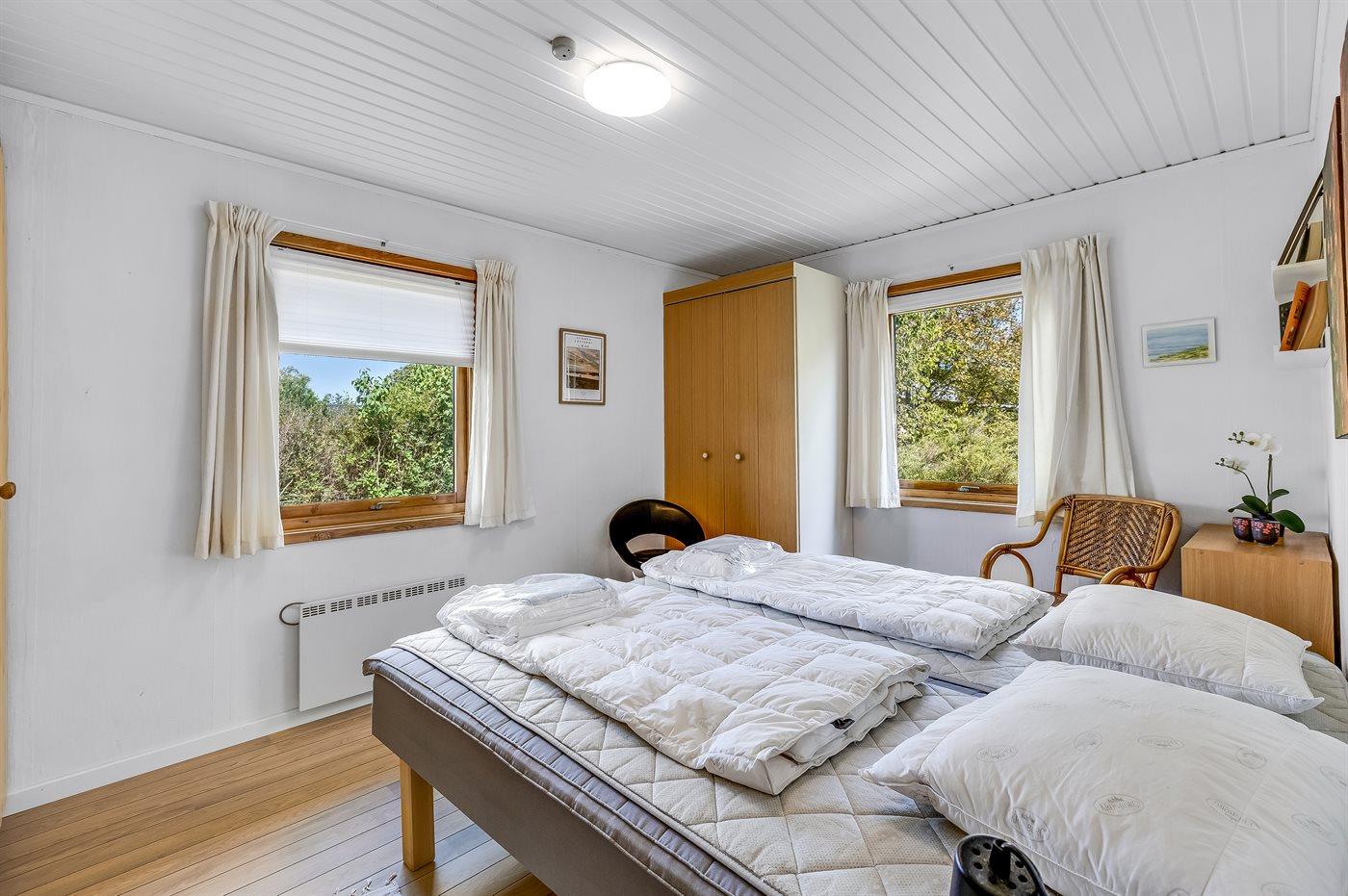 Der er i alt 3 soveværelser. Sovepladserne fordeler sig på: 4 sovepladser i dobbeltsenge. 2 sovepladser i enkeltsenge.