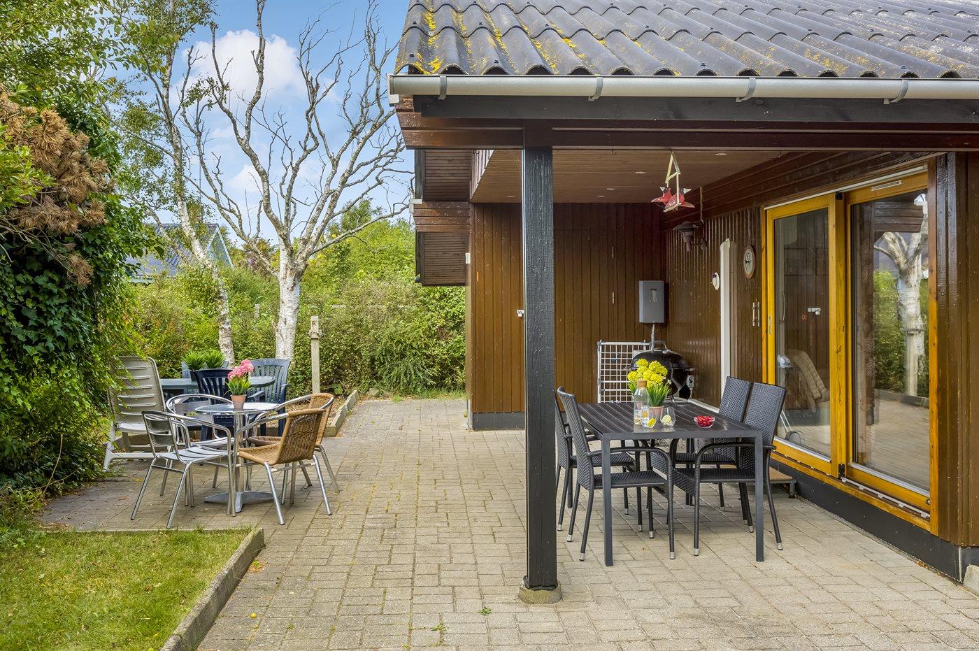 Ferieboligen er beliggende på en 1200 m² stor havegrund. Der er 500 m til havet. Nærmeste forretning er beliggende i en afstand af 500 m. Der er en golfbane i en afstand af 750 m. Til ferieboligen hører åbent terrasseareal. Desuden er der overdækket terrasse. Gynge. Der ligger en legeplads i en afstand af 500 m. Grill til rådighed. Der er carport til rådighed.