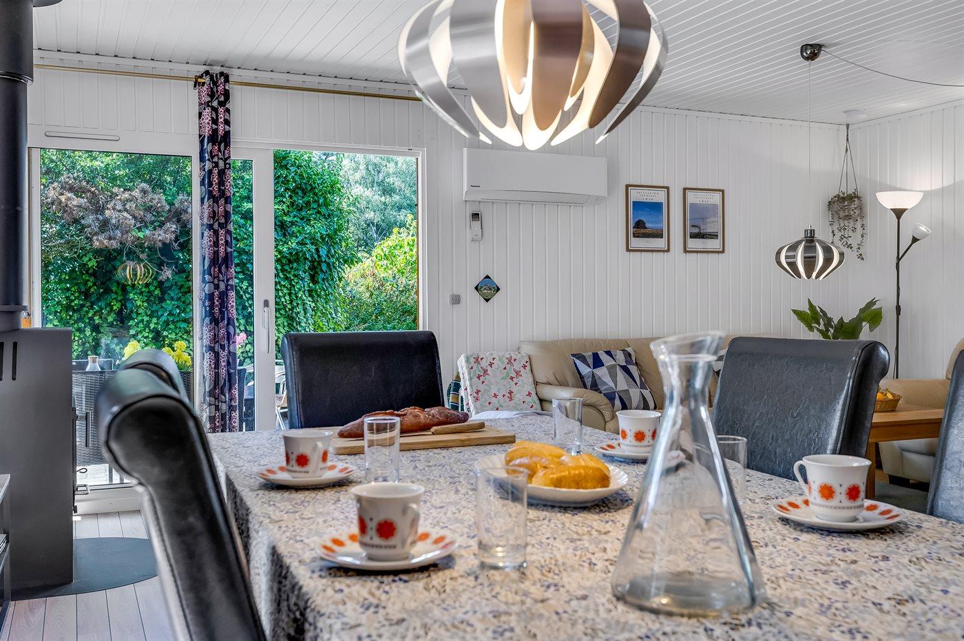 Sommerhuset egner sig til 6 personer. Ferieboligen er på 77 m² og er bygget i 1974. Det er tilladt at medbringe 2 husdyr. Ferieboligen er udstyret med 1 energivenlig luft til luft varmepumpe. Ferieboligen har vaskemaskine. Frysekapacitet på 50 liter. Der er desuden brændeovn.