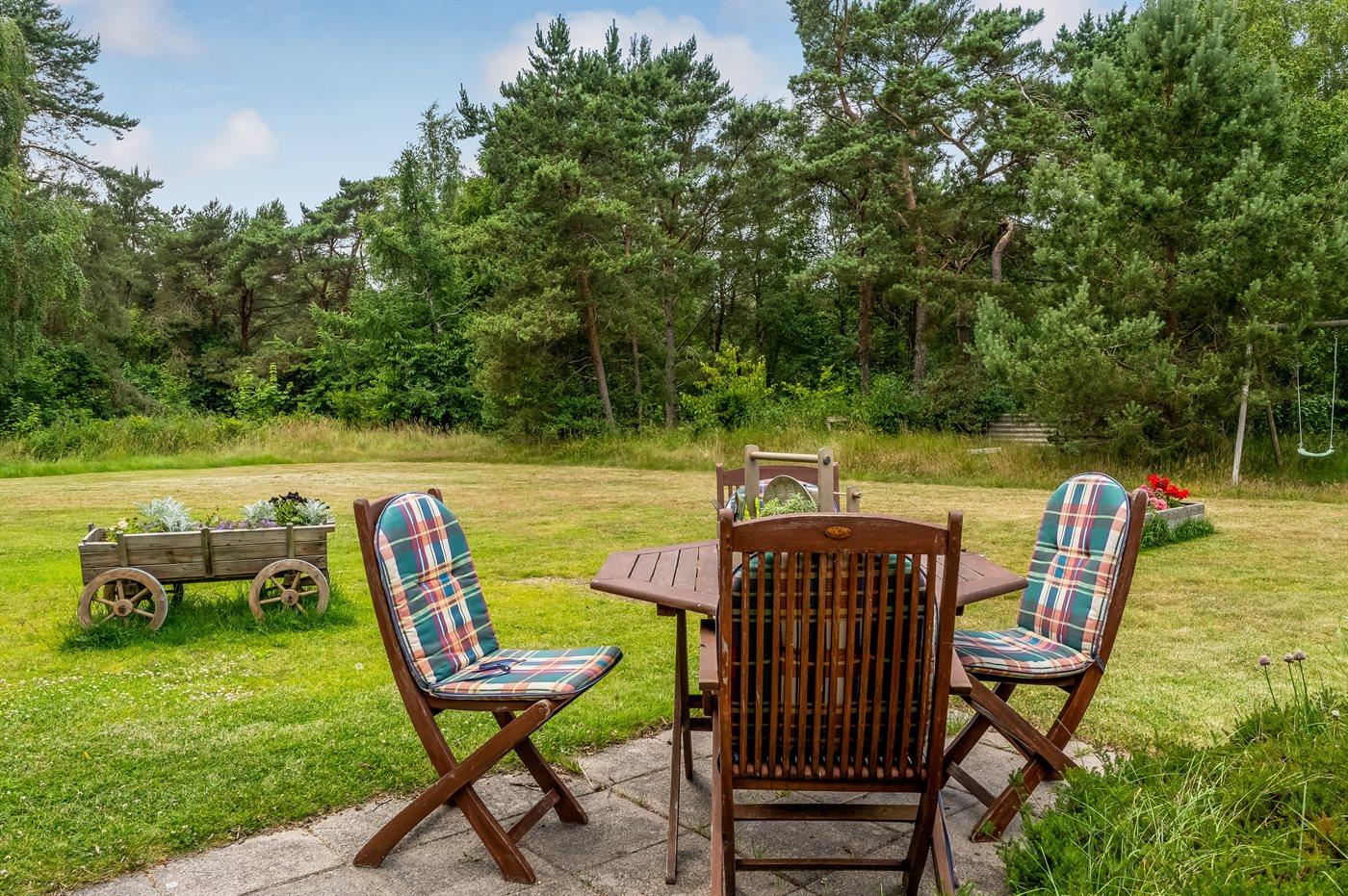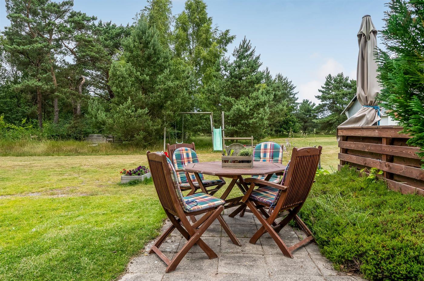 Ferieboligen er beliggende på en 4471 m² stor havegrund. Der er 1700 m til havet. Nærmeste forretning er beliggende i en afstand af 1830 m. Der er en golfbane i en afstand af 3880 m. Til ferieboligen hører åbent terrasseareal. Gynge. Sandkasse. Der ligger en legeplads i en afstand af 1850 m. Parkering ved ferieboligen.