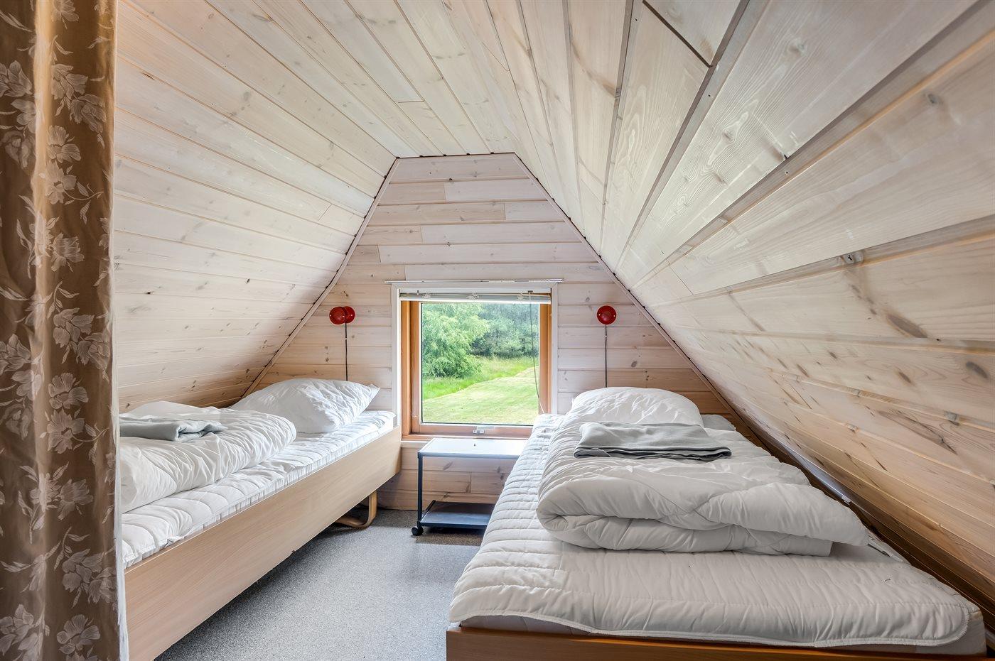 Der er i alt 3 soveværelser. Sovepladserne fordeler sig på: 2 sovepladser i dobbeltseng. 4 sovepladser i enkeltsenge.