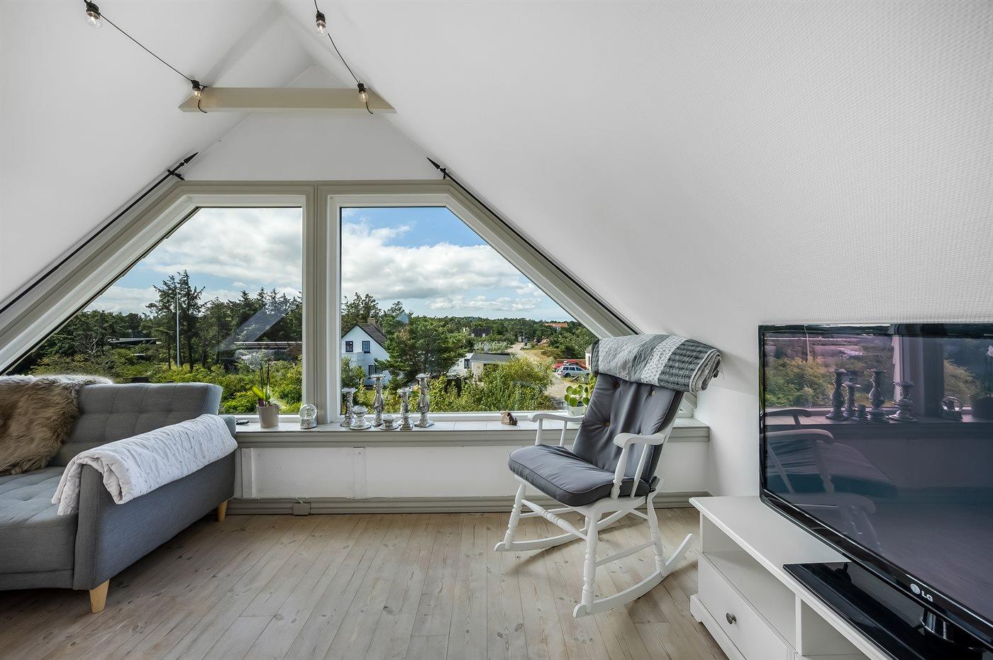 • Fra opholdsstuen er en skøn udsigt ud over havet med de mest fantastiske solnedgange.