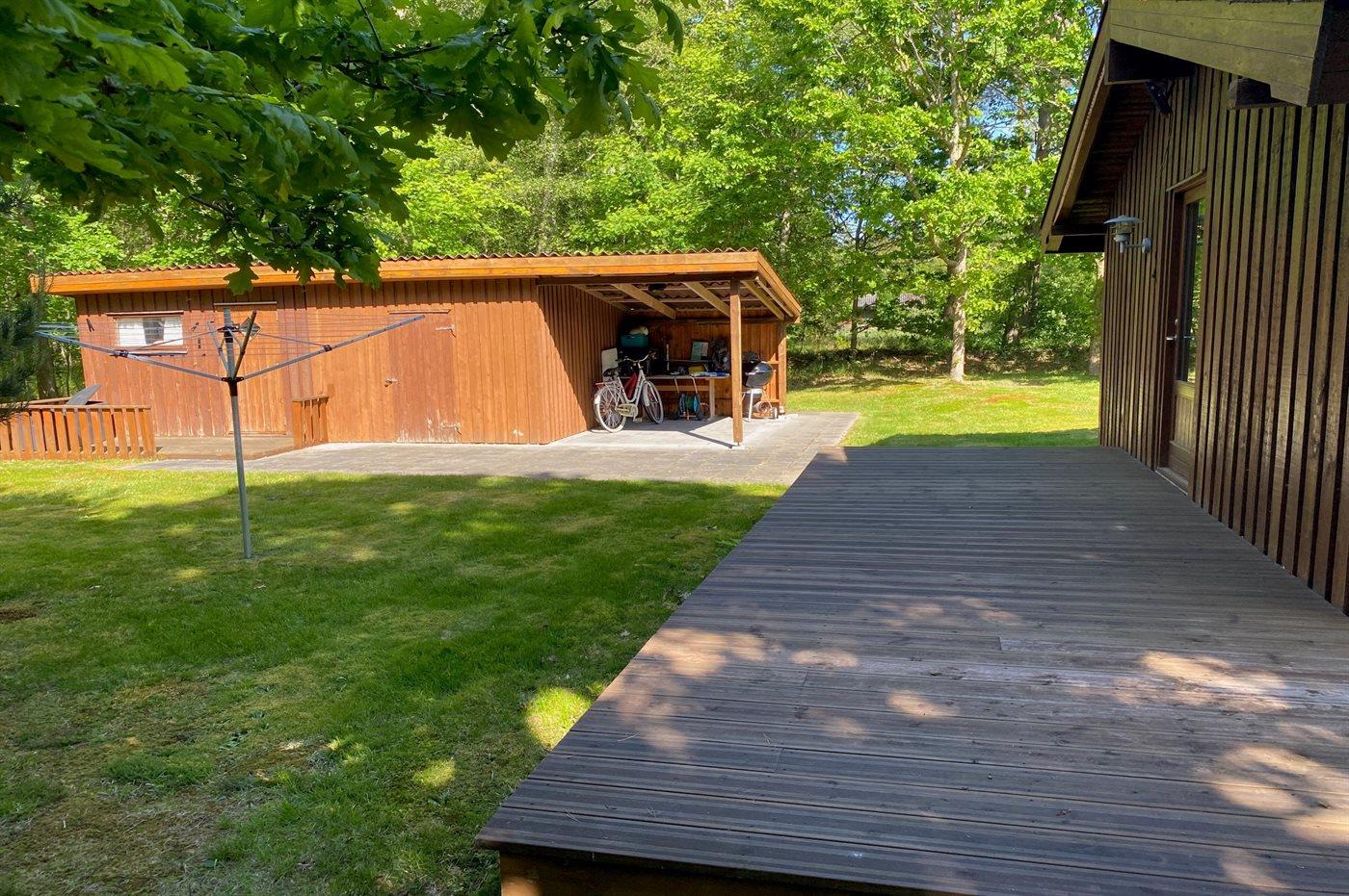 Ferieboligen er beliggende på en 5000 m² stor naturgrund. Der er 5000 m til havet. Nærmeste forretning er beliggende i en afstand af 1500 m. Der er en golfbane i en afstand af 6000 m. Til ferieboligen hører åbent terrasseareal. Desuden er der overdækket terrasse. Der er redskabsrum. Bålsted. På lune aftener sørger en udendørs pejs for hyggelig stemning. Grill til rådighed. Parkering ved ferieboligen.