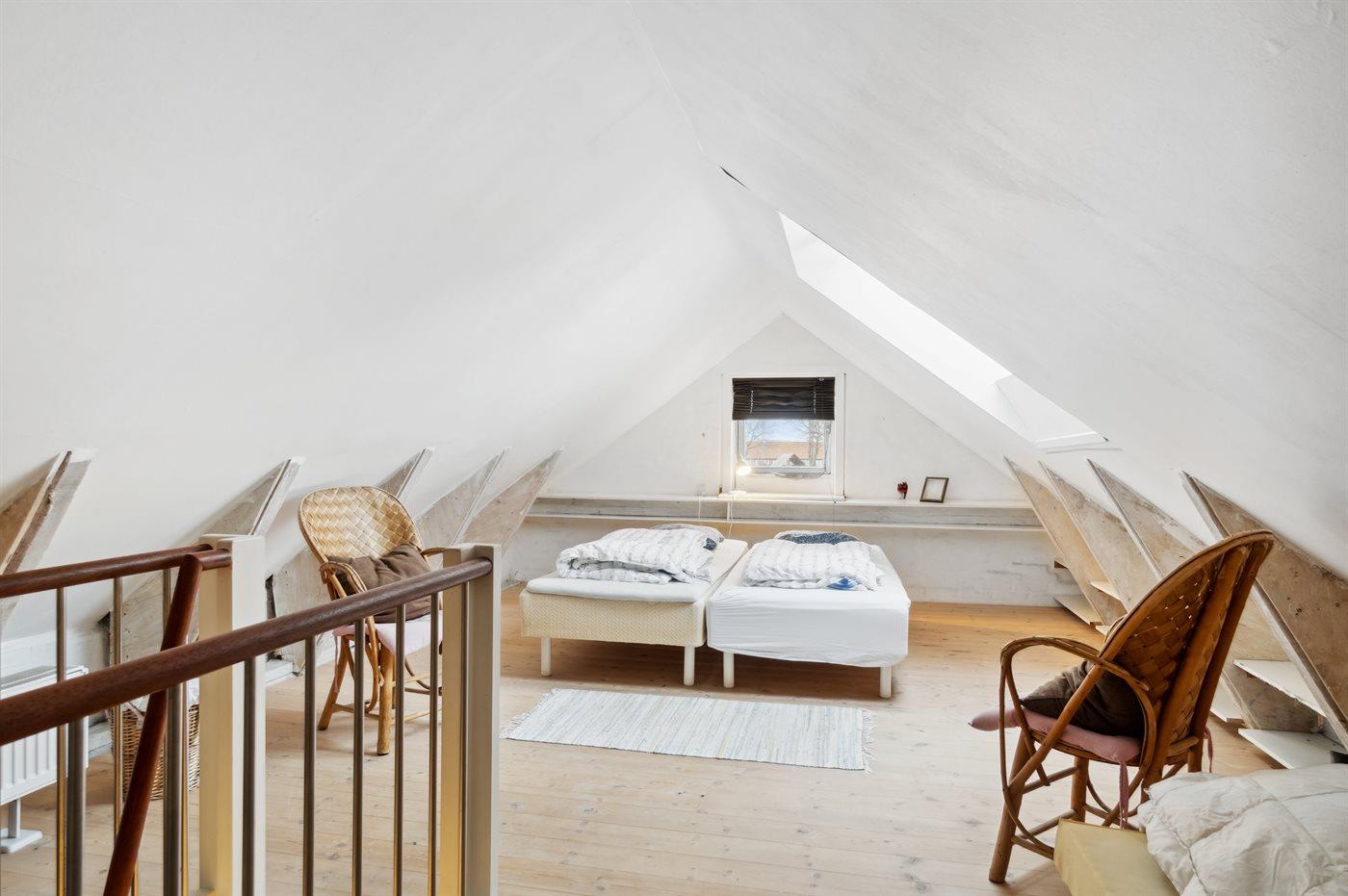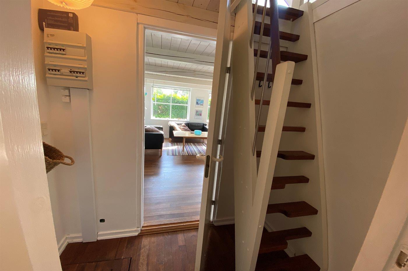 Obs! trappen til hems er stejl. Huset er kun opvarmet af fjernvarme - med gulvvarme i køkken og på badeværelse.