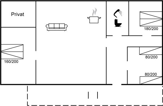 Der er i alt 3 soveværelser. Sovepladserne fordeler sig på: 4 sovepladser i dobbeltsenge. 2 sovepladser i enkeltsenge.
