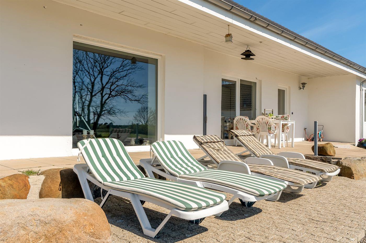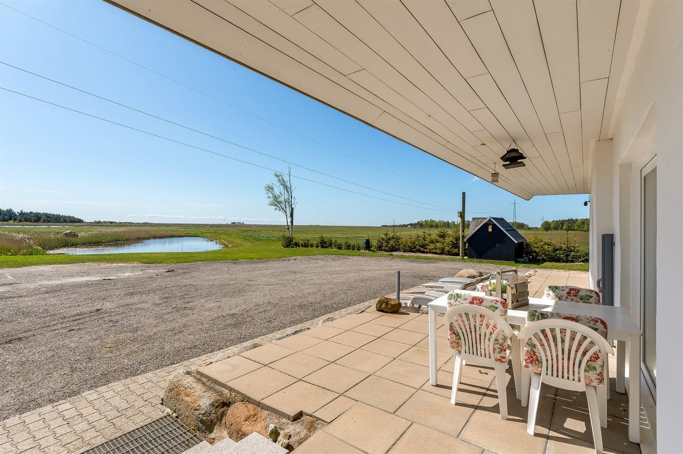 Stor, delvist overdækket sydvendt terrasse, hvor du kan nyde den fantastiske udsigt over Rønnerne, hen mod Læsøs berømte Saltsyderi.