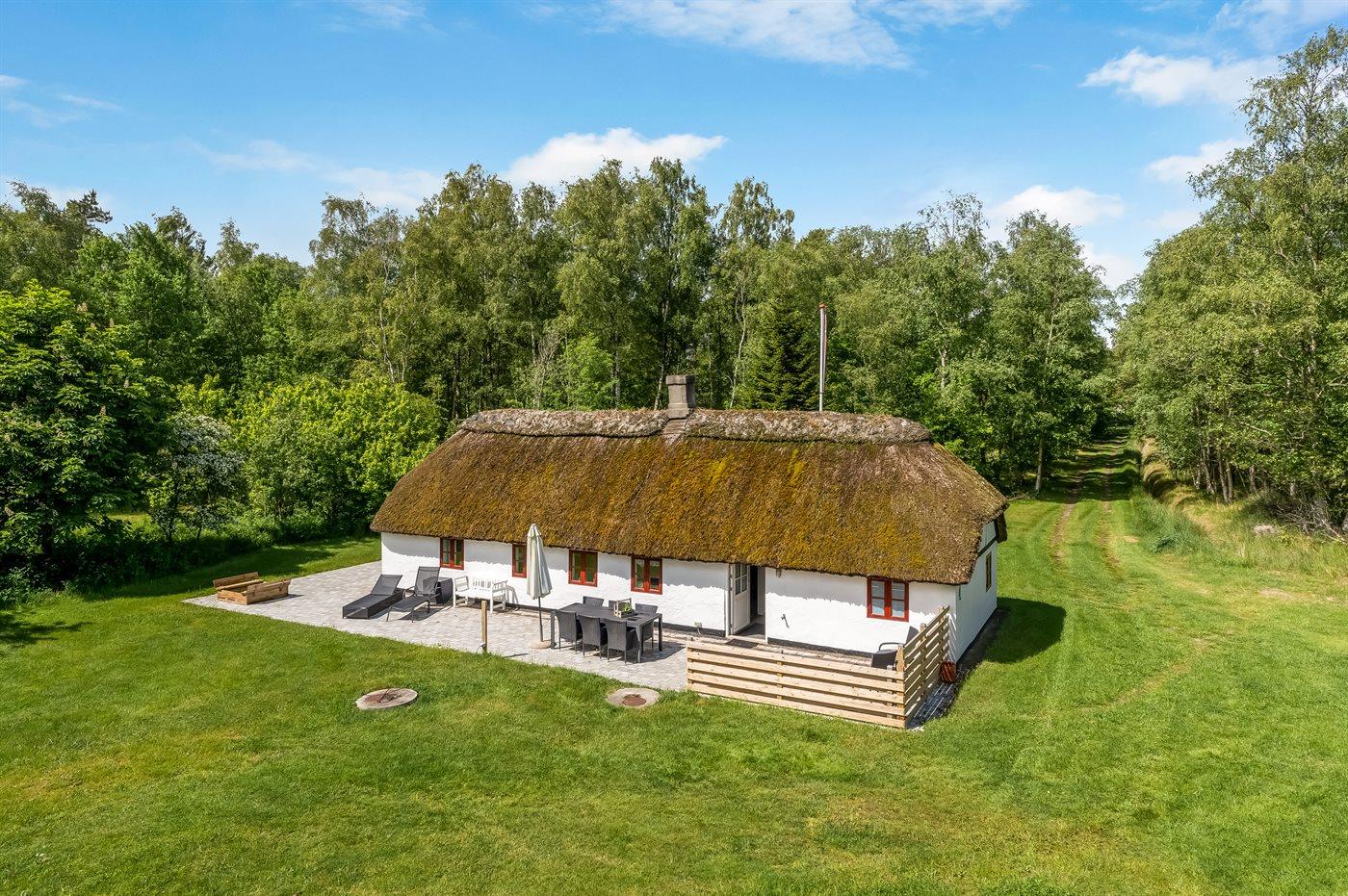 Autentisk stråtækt bondehus på Læsø med fredelig beliggenhed tæt på skov og natur.
