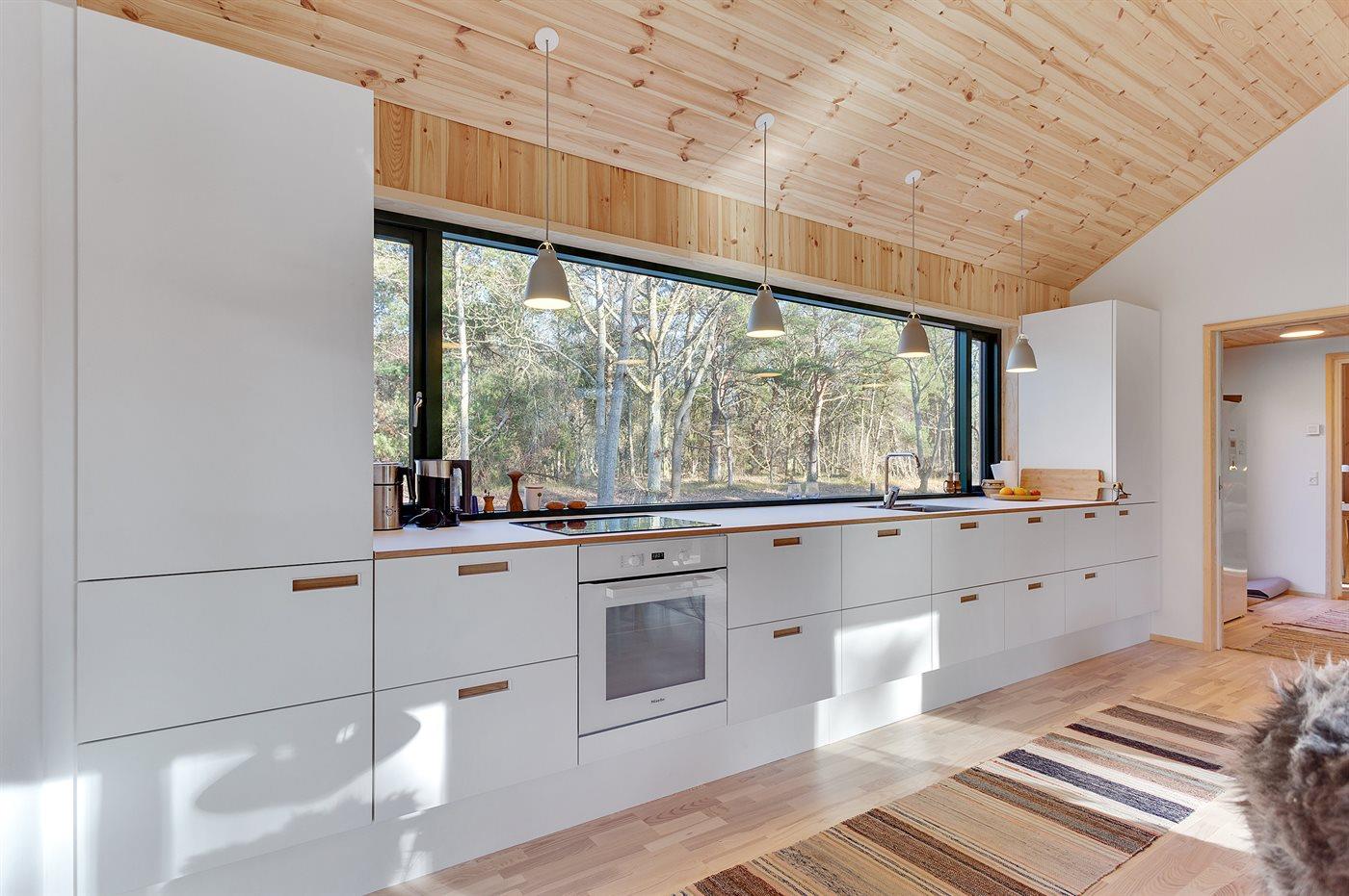 Køkkenet er udstyret med 1 køleskab. Der er 4 induktionskogeplader, varmluftovn samt opvaskemaskine.