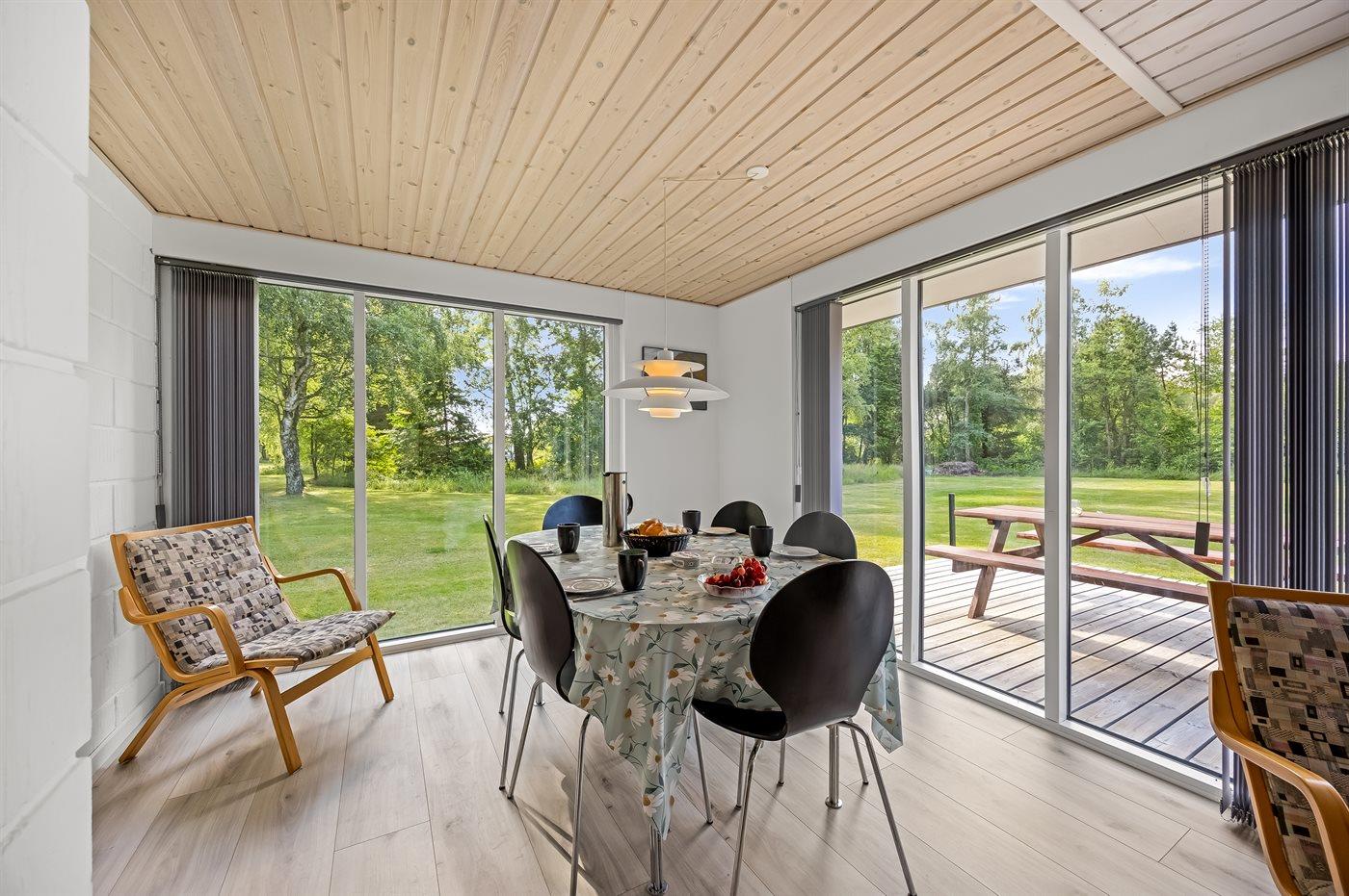 Huset ligger fredeligt i en skovklædt del af øen og der findes en stor, grøn grund med masser af plads til leg og afslapning.
