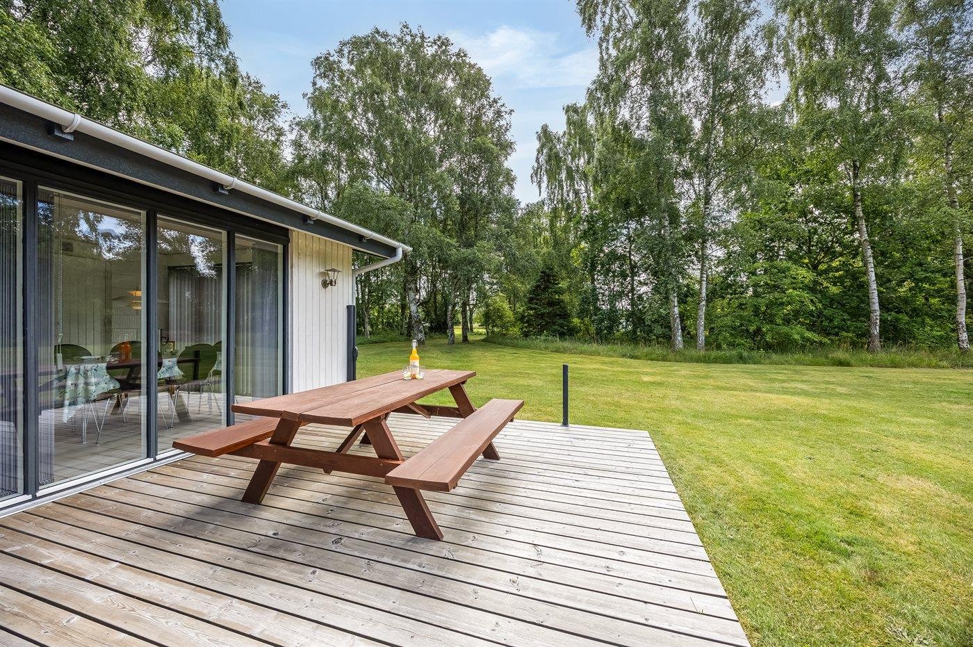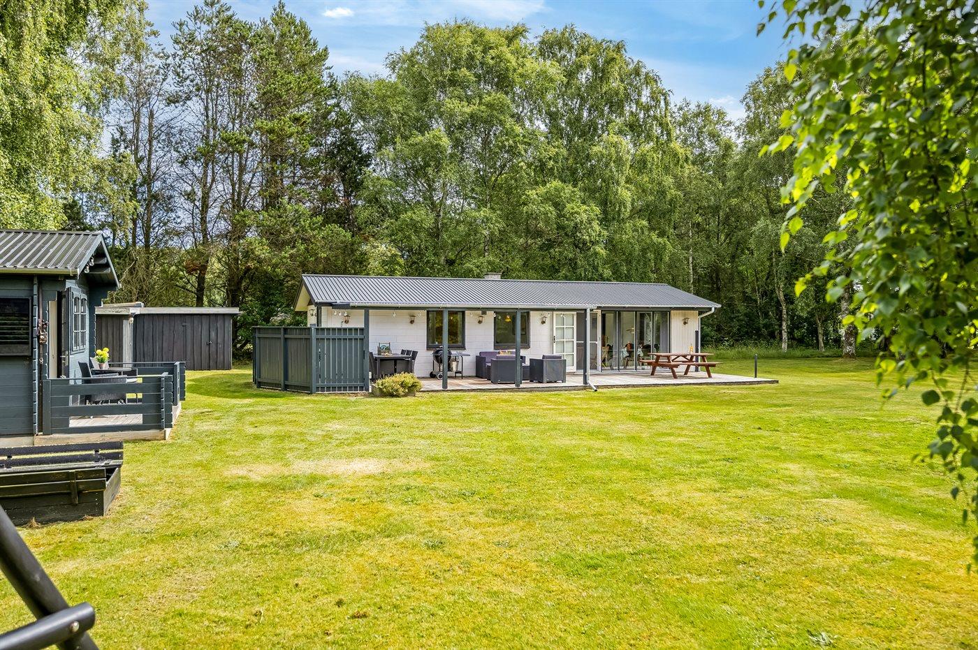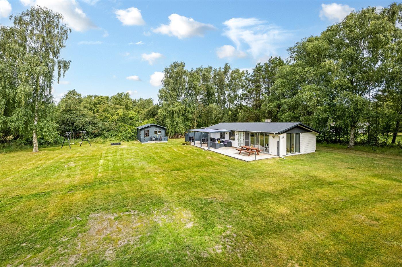 Ferieboligen er beliggende på en 2500 m² stor naturgrund. Der er 800 m til havet. Nærmeste forretning er beliggende i en afstand af 3500 m. Der er en golfbane i en afstand af 9000 m. Til ferieboligen hører åbent terrasseareal. Desuden er der overdækket terrasse. Gynge. Sandkasse. Der ligger en legeplads i en afstand af 3500 m. Grill til rådighed. Parkering ved ferieboligen.