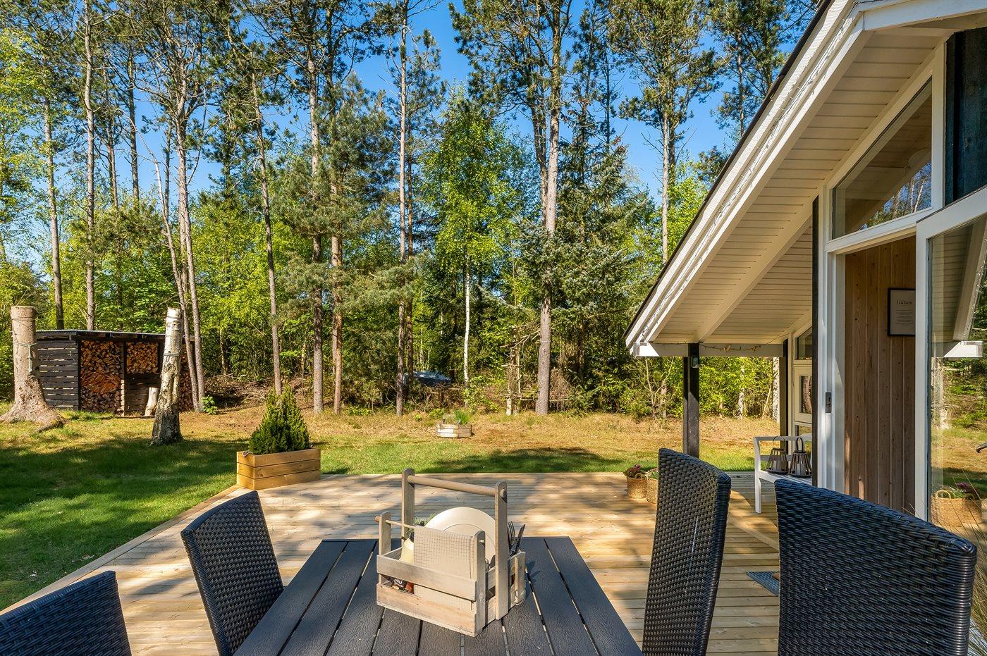 Ferieboligen er beliggende på en 2200 m2 stor naturgrund. Der er 400 m til havet. Nærmeste forretning er beliggende i en afstand af 800 m. Der er redskabsrum og carport til rådighed. Parkering ved ferieboligen. Der er installeret kraftstik, gæster skal selv medbringe kabler til opladning af elbil.