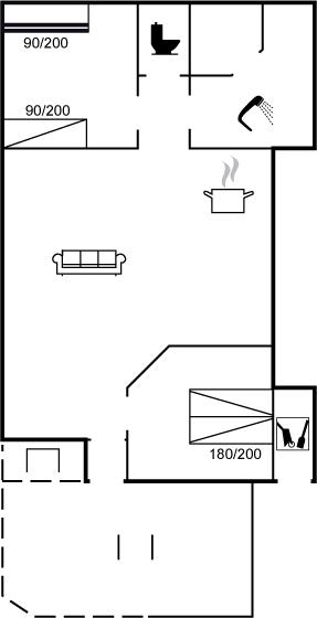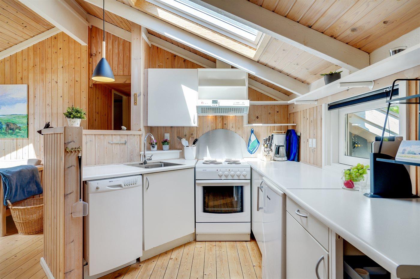 Der er i alt 2 soveværelser. Sovepladserne fordeler sig på: 2 sovepladser i dobbeltseng, 1 soveplads i enkeltseng og 2 sovepladser i køjeseng. Køkkenet er udstyret med 1 køleskab, der er 4 elkogeplader, varmluftsovn, airfryer samt opvaskemaskine. Der er 1 rum med toilet og 1 badeværelse med vaskemaskine og bruseniche.