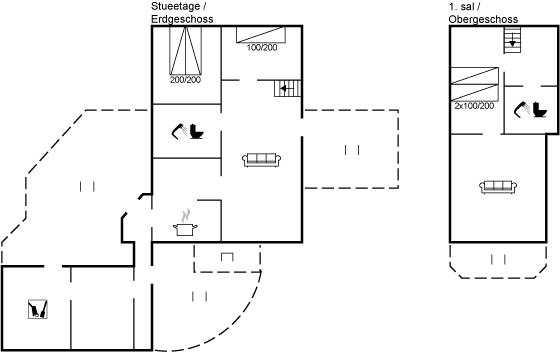 Der er i alt 3 soveværelser. Sovepladserne fordeler sig på: 4 sovepladser i dobbeltsenge. 2 sovepladser i enkeltsenge. 1 af disse sovepladser befinder sig på husets hems. Derudover er der 1 stk. barneseng. Der er gulvvarme i 2 af soveværelserne.