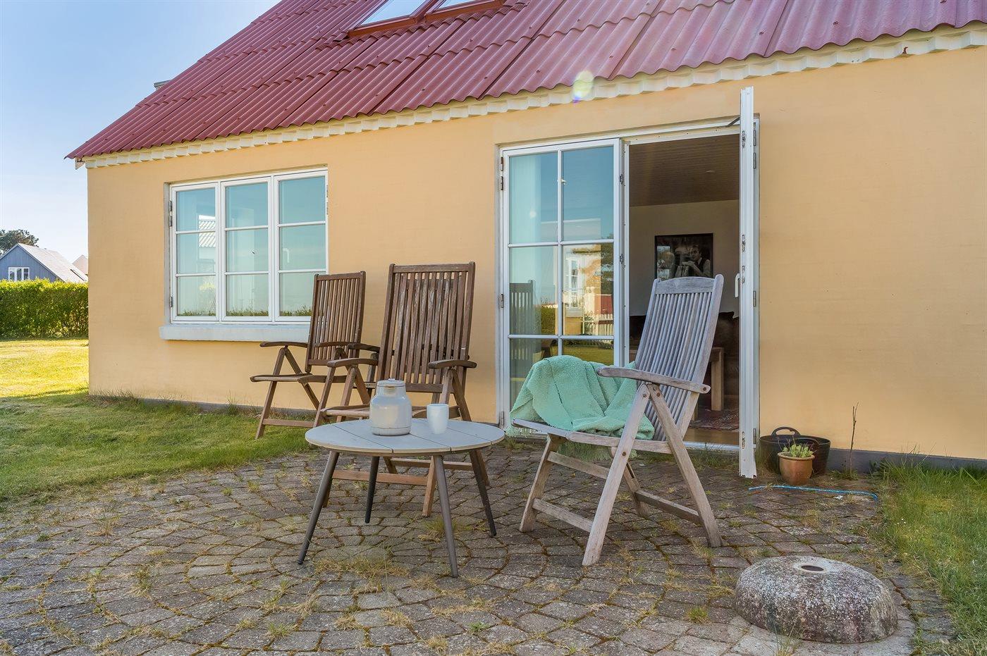 Hyggeligt renoveret sommerhus i Vesterø med havudsigt og ugenert gårdhave tæt på stranden.