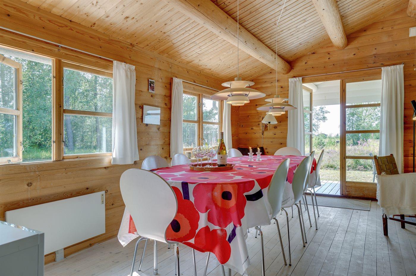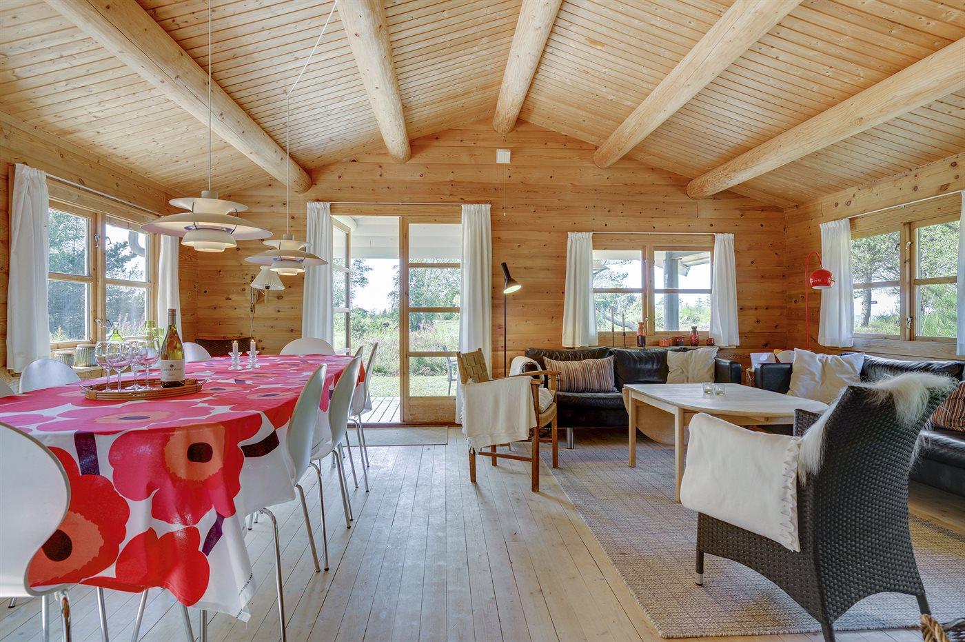 Ferieboligen er på 116 m² og består af et hovedhus fra 1983, moderniseret i 2012 – og et anneks fra 2019 med eget toilet og brusebad. De 5 soveværelser fordeler sig med 2 i hovedhuset og 3 i annekset, 4 af værelserne har dobbeltsenge og 1 har to enkeltsenge. Der er brændeovn, vaskemaskine, tørretumbler, fryser med kapacitet på 40 liter. Køkkenet er udstyret med køleskab, 4 induktionskogeplader, varmluftsovn, mikrobølgeovn og opvaskemaskine. Sommerhuset har trådløst internet og 1 TV med DVD-afspiller og mindst 4 danske, 4 svenske og 4 tyske kanaler, der er desuden cd-afspiller.