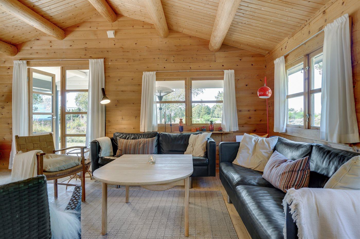 Dejligt, rustikt bjælkesommerhus beliggende på stor indbydende naturgrund med lyng og fyrretræer. Grunden har masser af læ og havudsigt. Huset ligger i meget attraktivt område, med mange stier og hyggelige gå-muligheder og tæt til stranden.