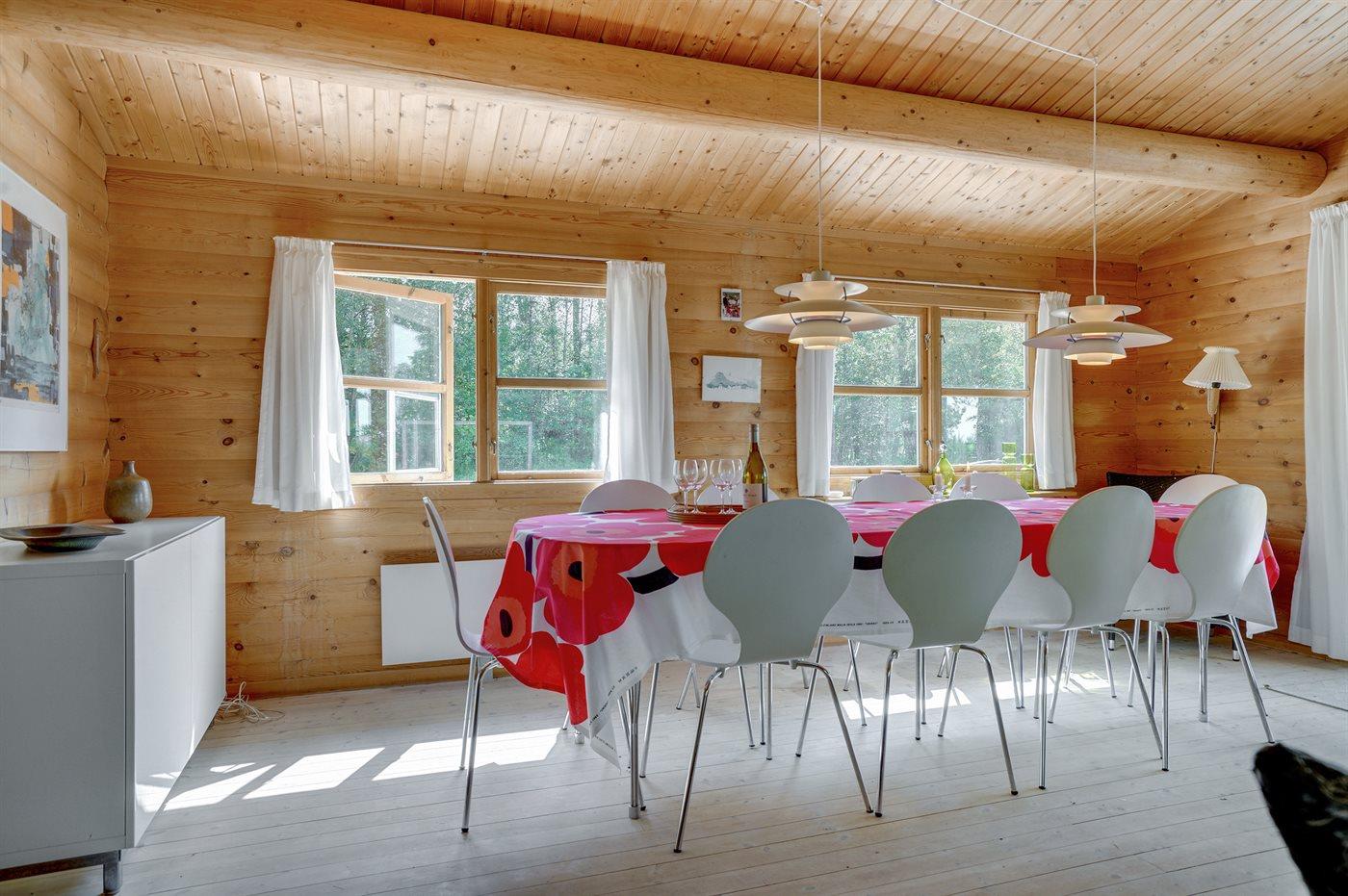 Sommerhuset er egnet til 10 personer. Der er 5 soveværelser og to badeværelser, begge med brusebad og varme i gulvet. Det er tilladt at medbringe 1 husdyr. Til de små er der en barnestol og en barneseng.