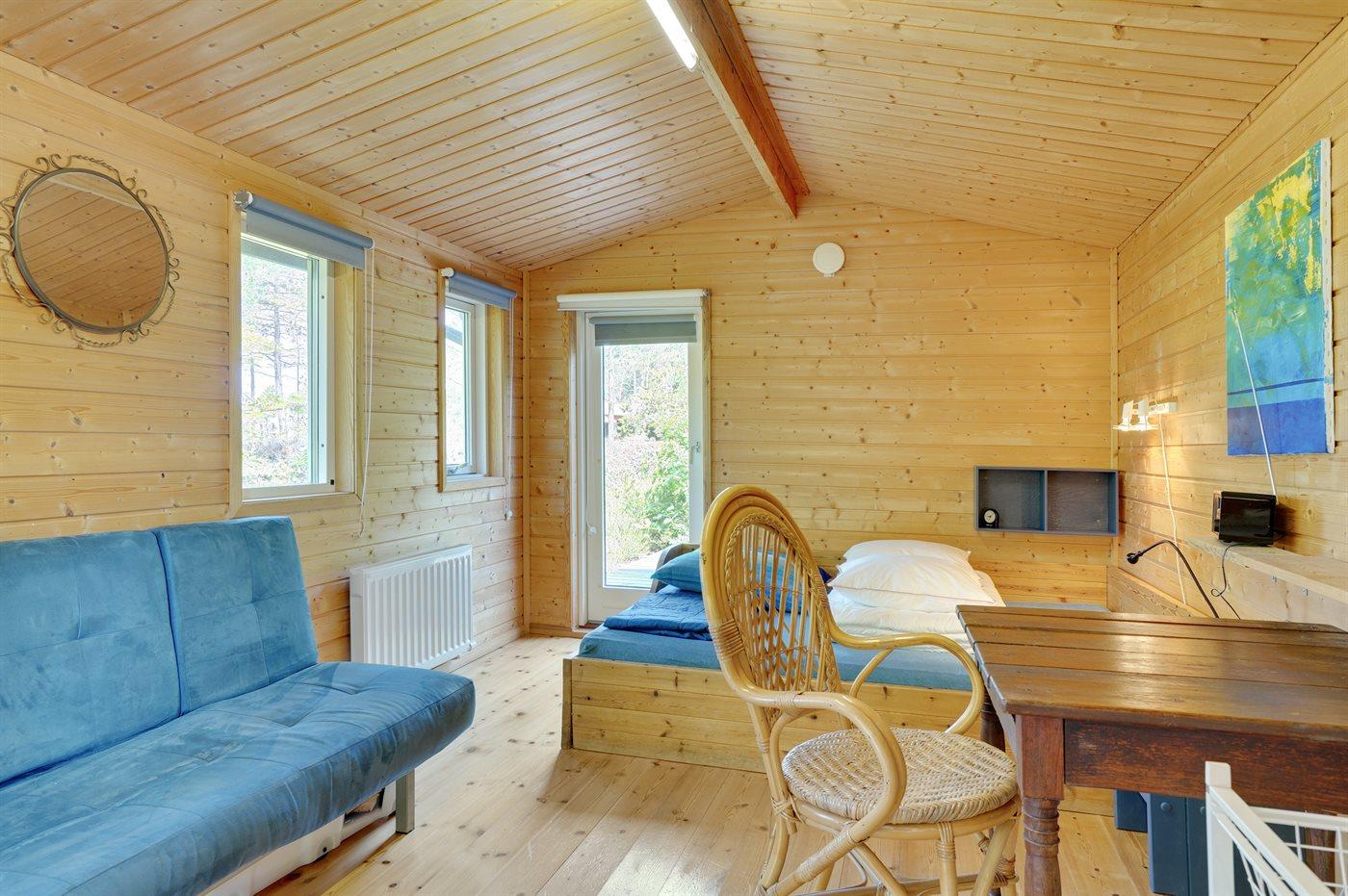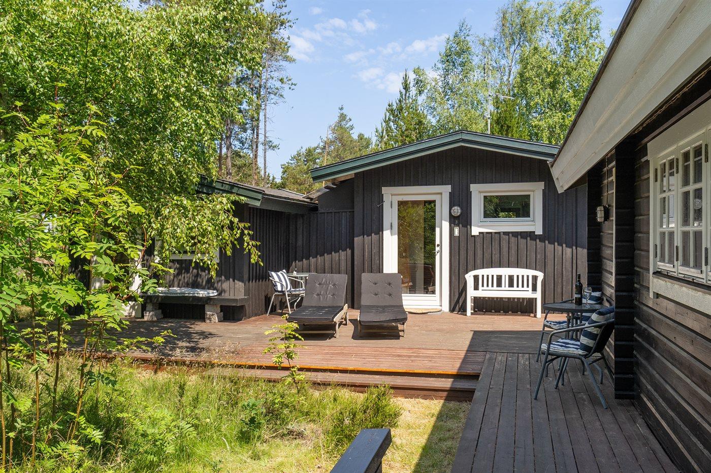 Ferieboligen er beliggende på en 1890 m² stor grund i skov/plantage. Der er 300 m til havet. Nærmeste forretning er beliggende i en afstand af 2400 m. Til ferieboligen hører 40 m² terrasseareal. Der er redskabsrum. Grill til rådighed. Cykler står til rådighed. Vi garanterer ikke for cyklernes stand, og al service på cyklerne er gæsternes eget ansvar.