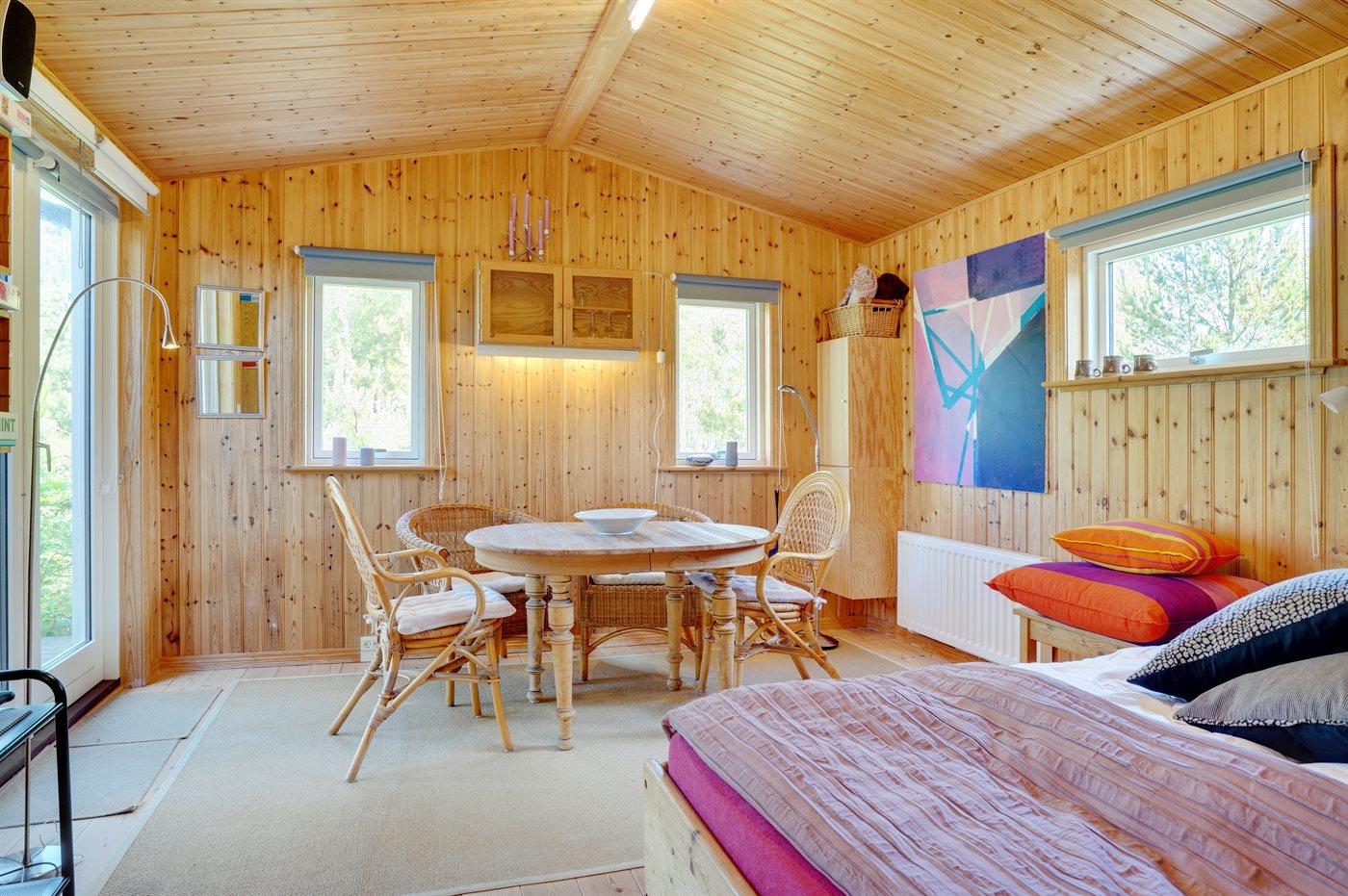Hyggeligt sommerhus med en dejlig beliggenhed nær vandet, stranden, klitplantagen samt Vesterø by og færgelejet. Til huset hører 2 rummelige annekser, som hver er indrettet med 2 af de i alt 6 sovepladser.