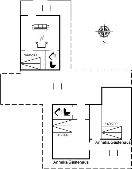 Der er i alt 3 soveværelser. Sovepladserne fordeler sig på: 6 sovepladser i dobbeltsenge.- 4 af disse sovepladser fordeler sig på 2 annekser.