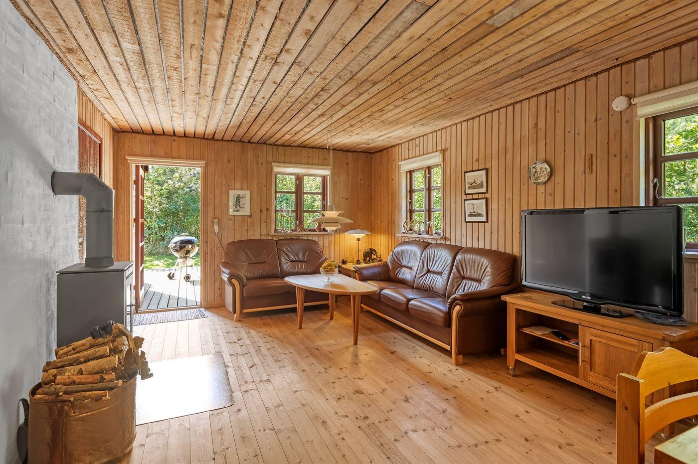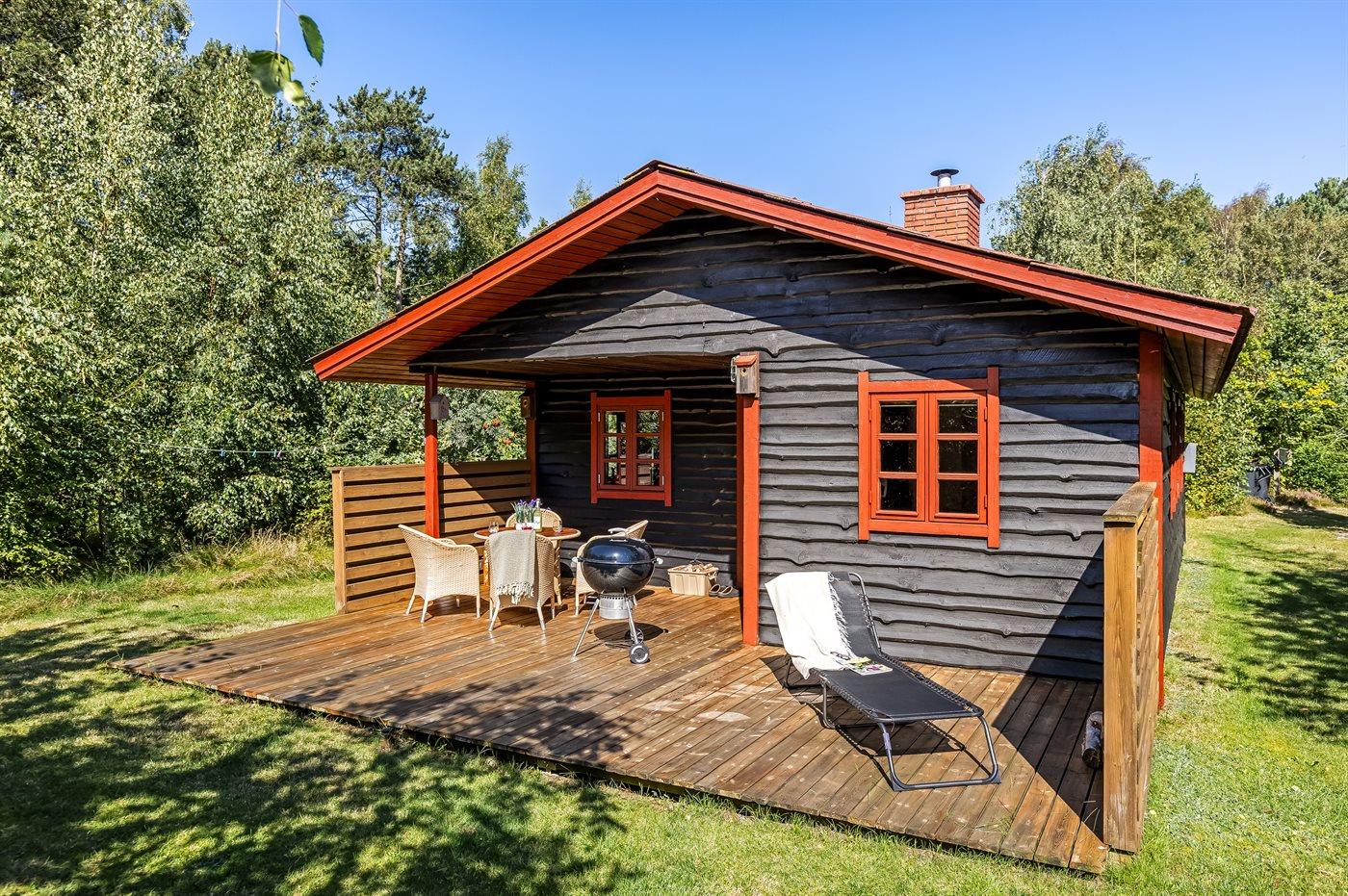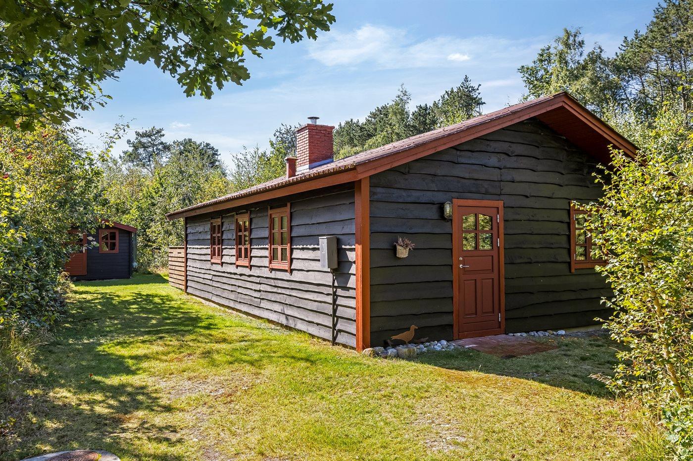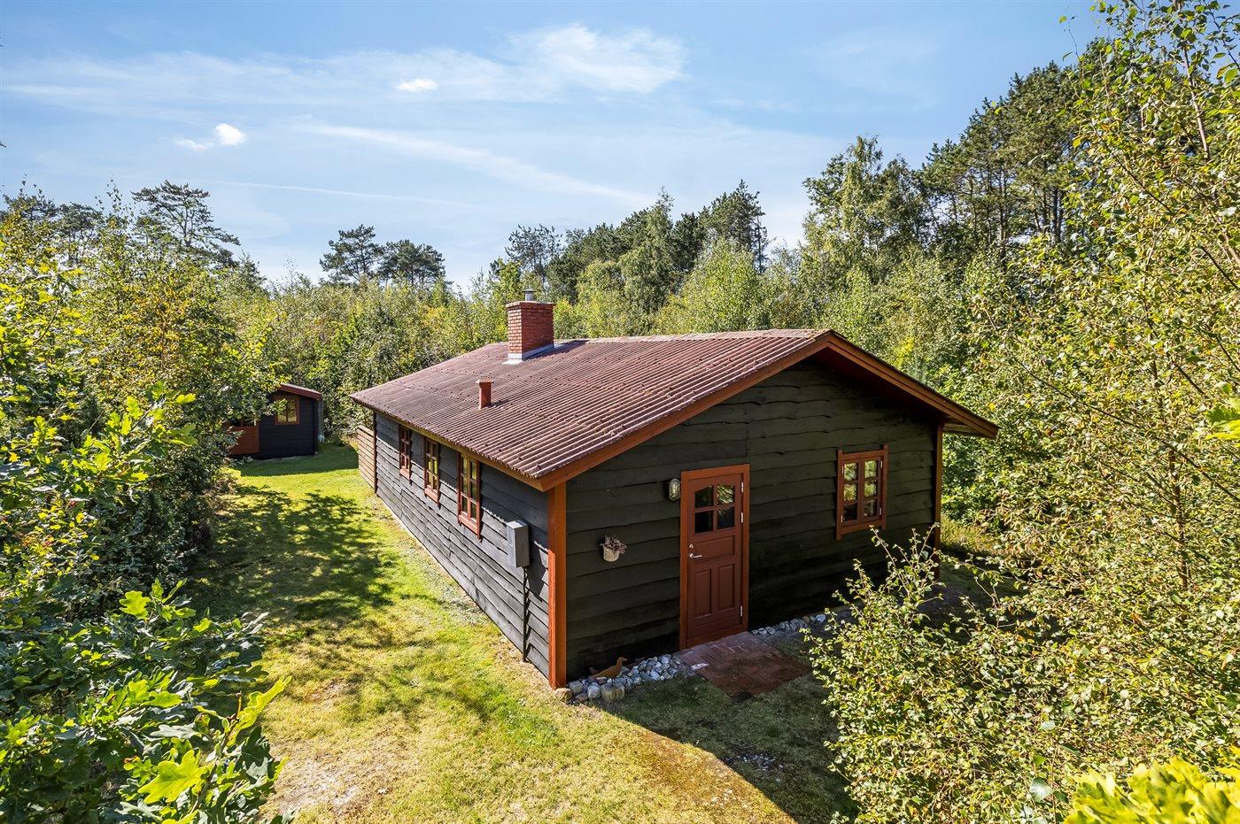 Dette sommerhus ligger i naturskønne omgivelser - på en stor grund med plads til boldspil og leg.