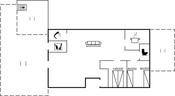 Der er i alt 2 soveværelser. Sovepladserne fordeler sig på: 2 sovepladser i dobbeltseng. 2 sovepladser i enkeltsenge.