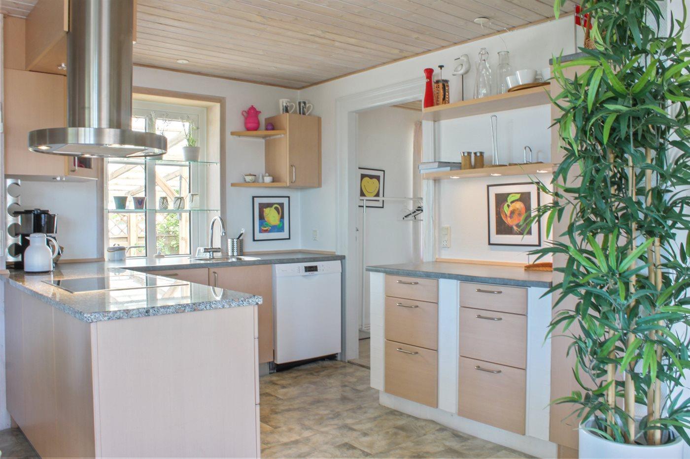 Køkkenet er udstyret med 1 køleskab. Der er 4 keramiske kogeplader. Der er 4 induktionskogeplader, bageovn, varmluftovn, mikrobølgeovn samt opvaskemaskine.