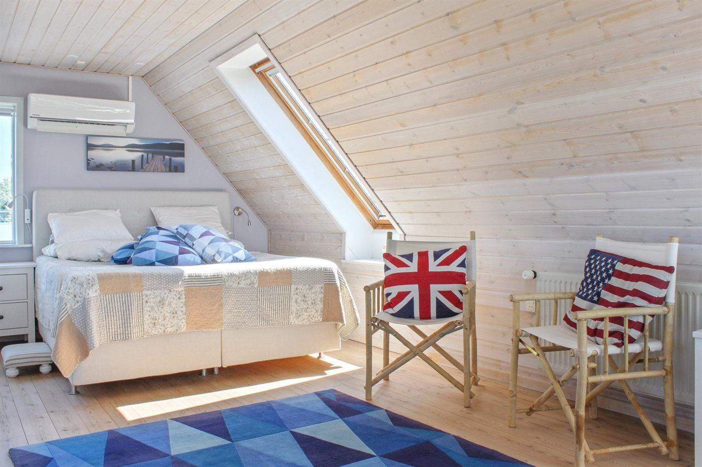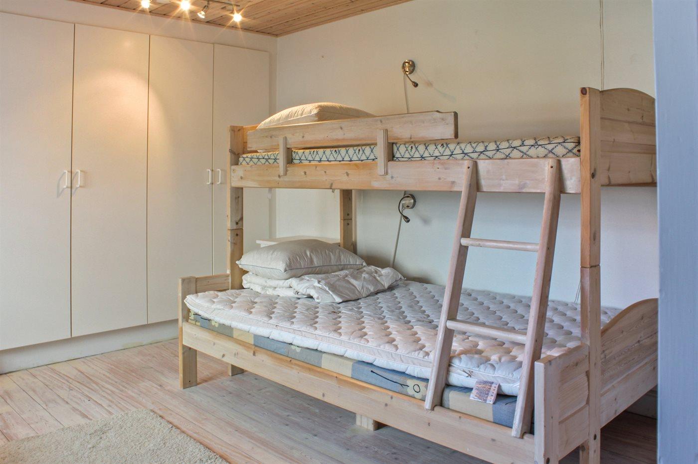 Der er i alt 3 soveværelser. Sovepladserne fordeler sig på: 6 sovepladser i dobbeltsenge.1 soveplads i køjeseng. Derudover er der 1 stk. barneseng.