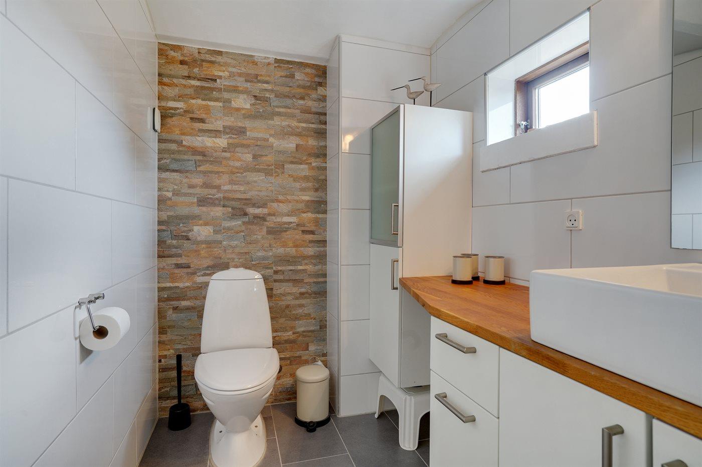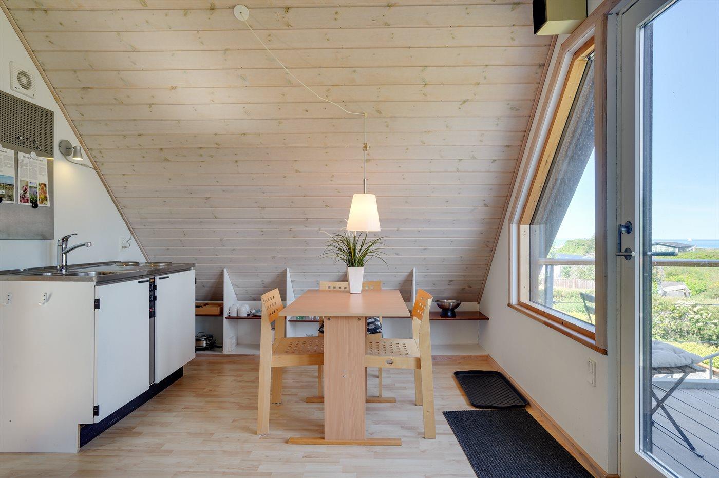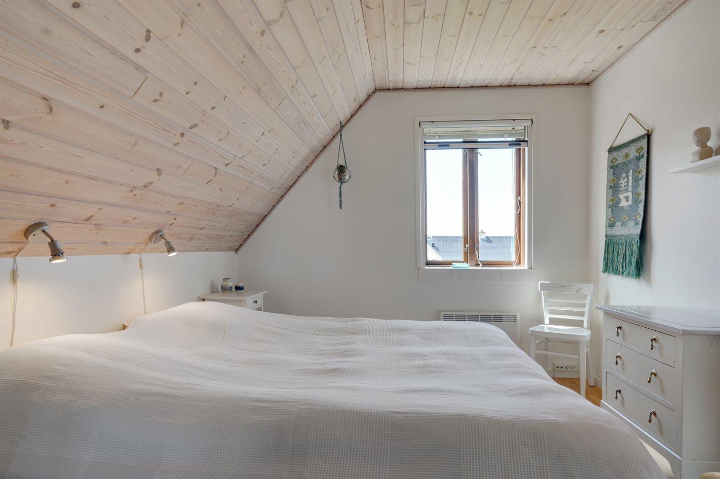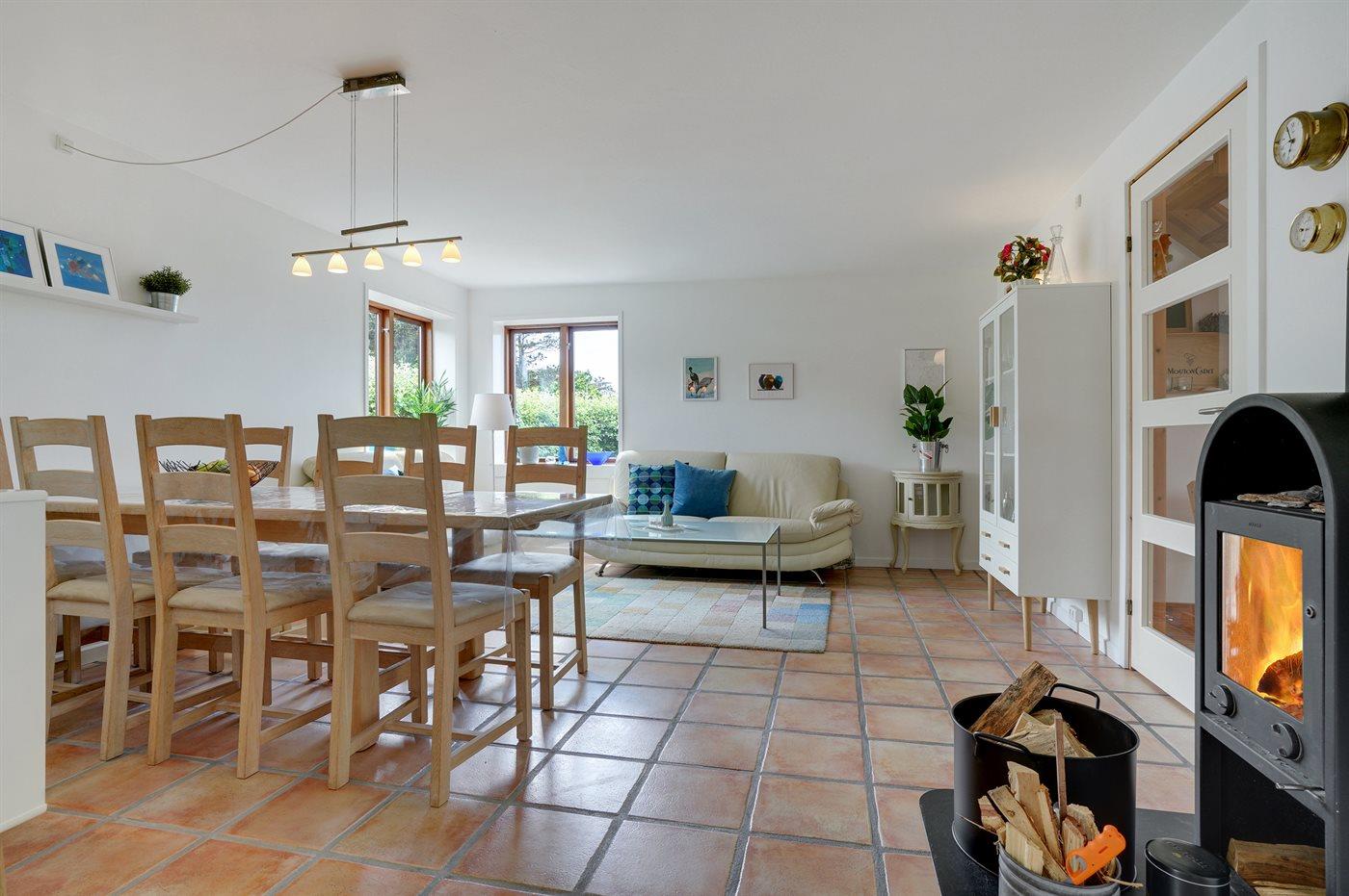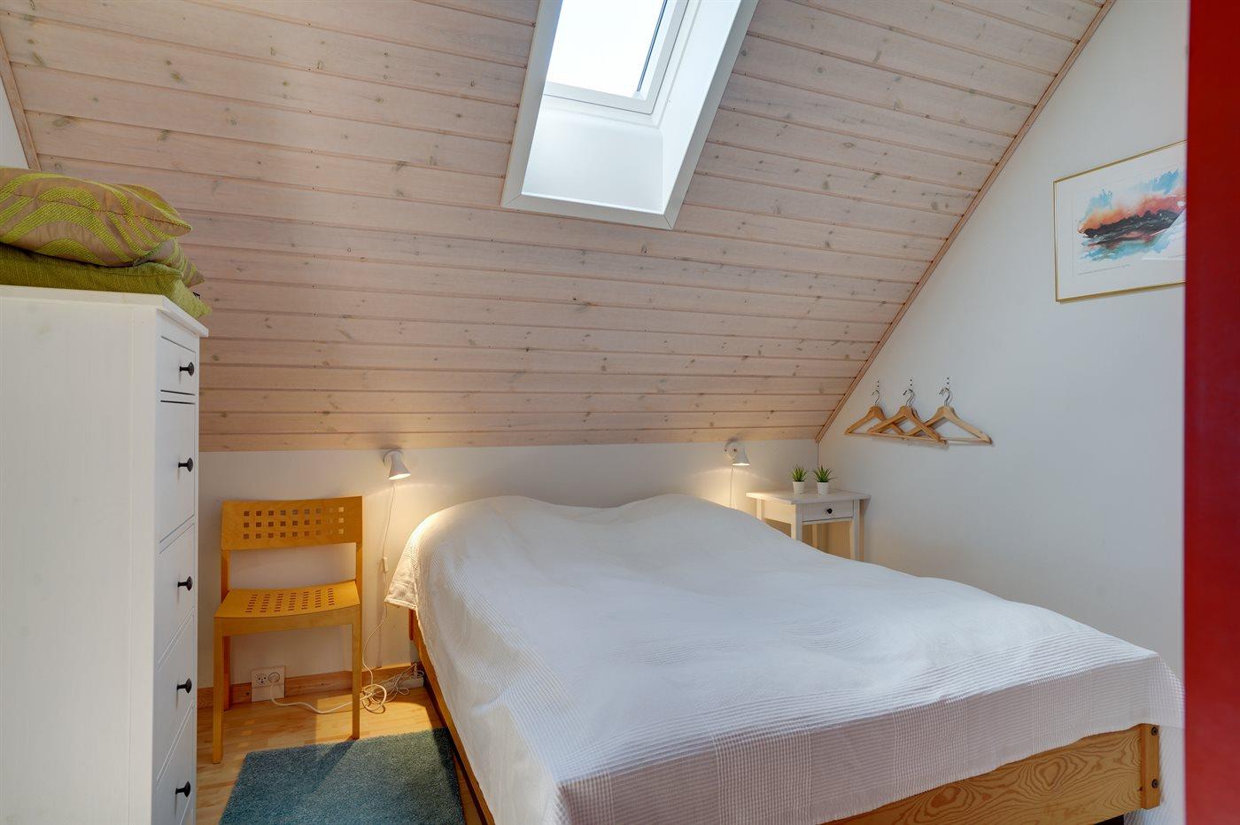 I hovedhuset er 3 soverum. Dejligt soveværelse med dobbeltseng, 1 værelse med 2 sovepladser i køjeseng og 1 værelse med dobbeltseng. I det veludstyrede køkken med gulvvarme, er der 1 køleskab, 1 fryser (kapacitet 125 liter) 4 keramiske kogeplader, varmluftovn, mikrobølgeovn samt opvaskemaskine.