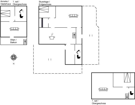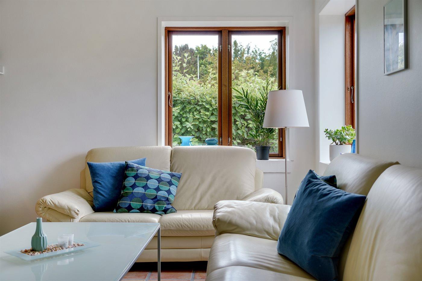 Annekset: Er på 34 m2, der er 1 soveværelse med dobbeltseng, 1 badeværelse med bruseniche. Der gulvvarme på badeværelset. 1 opholdsrum med tekøkken, spiseplads, samt sofagruppe. Der er 1 TV, DVD afspiller og radio. Der er danske, norske, svenske og tyske kanaler. Annekset er udstyret med 1 energibesparende varmepumpe.