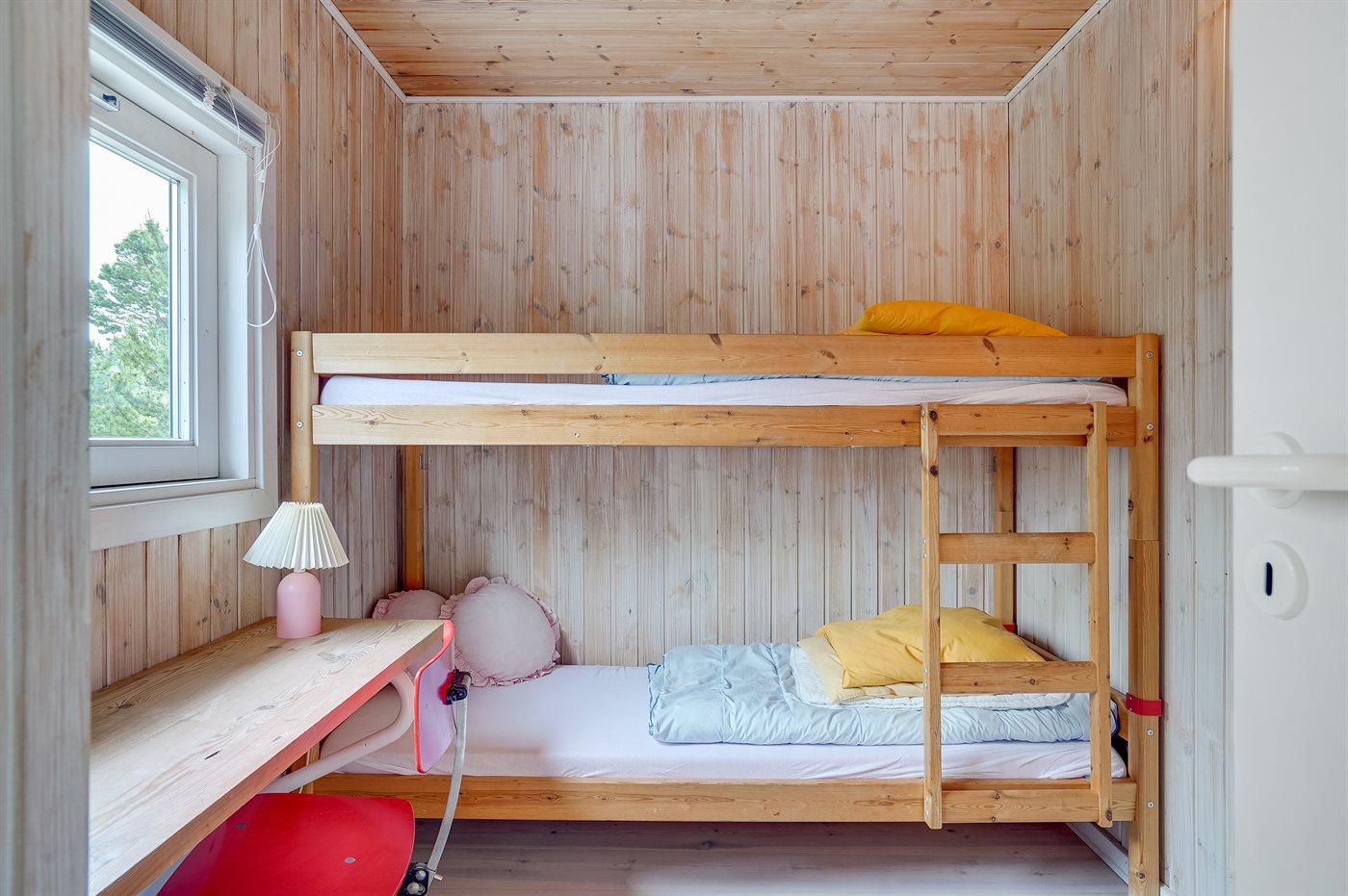 Der er i alt 3 soveværelser. Sovepladserne fordeler sig på: 4 sovepladser i dobbeltsenge. 2 sovepladser i køjeseng.