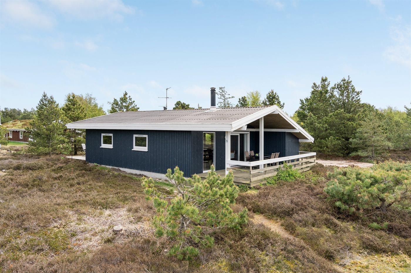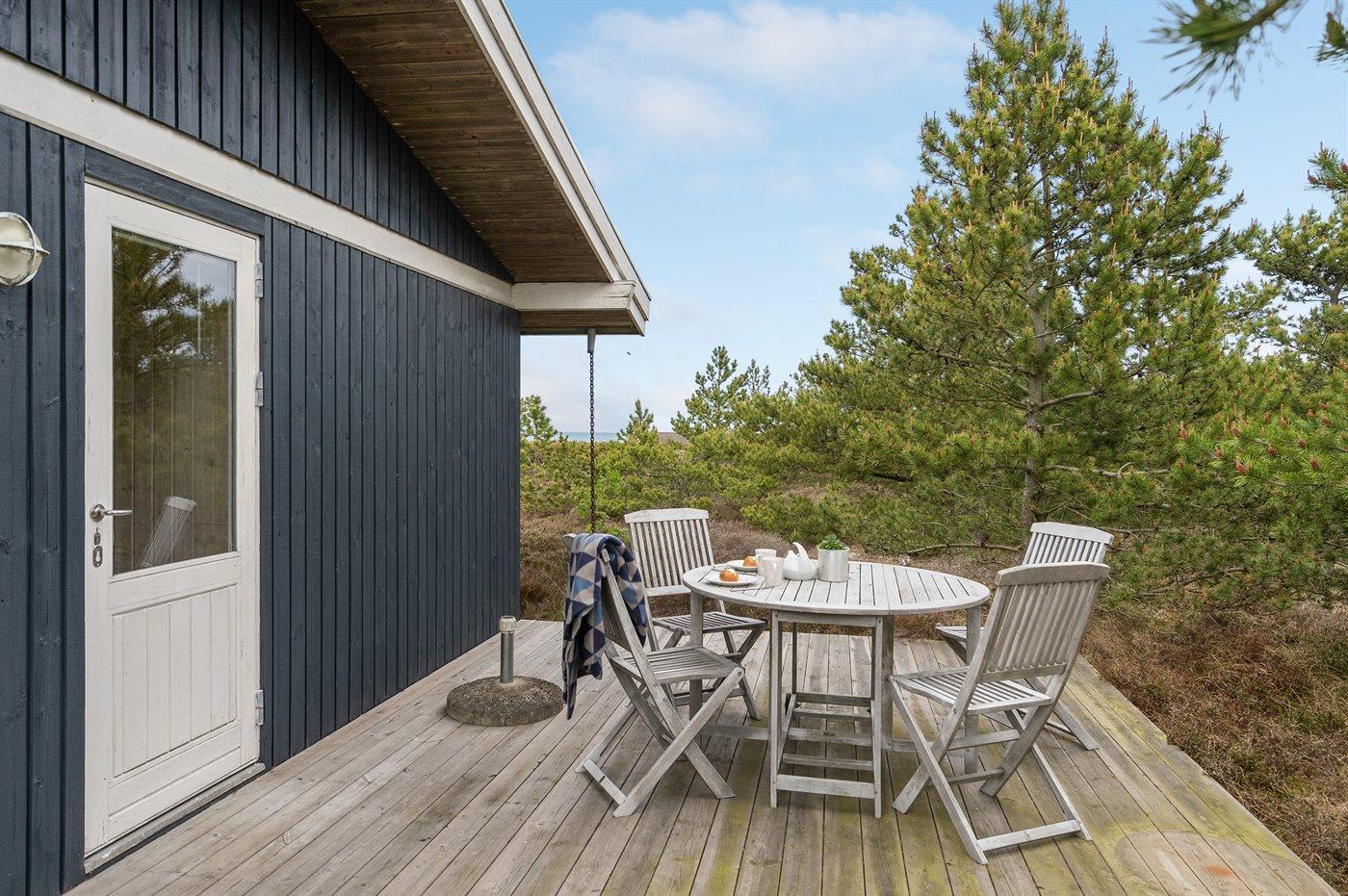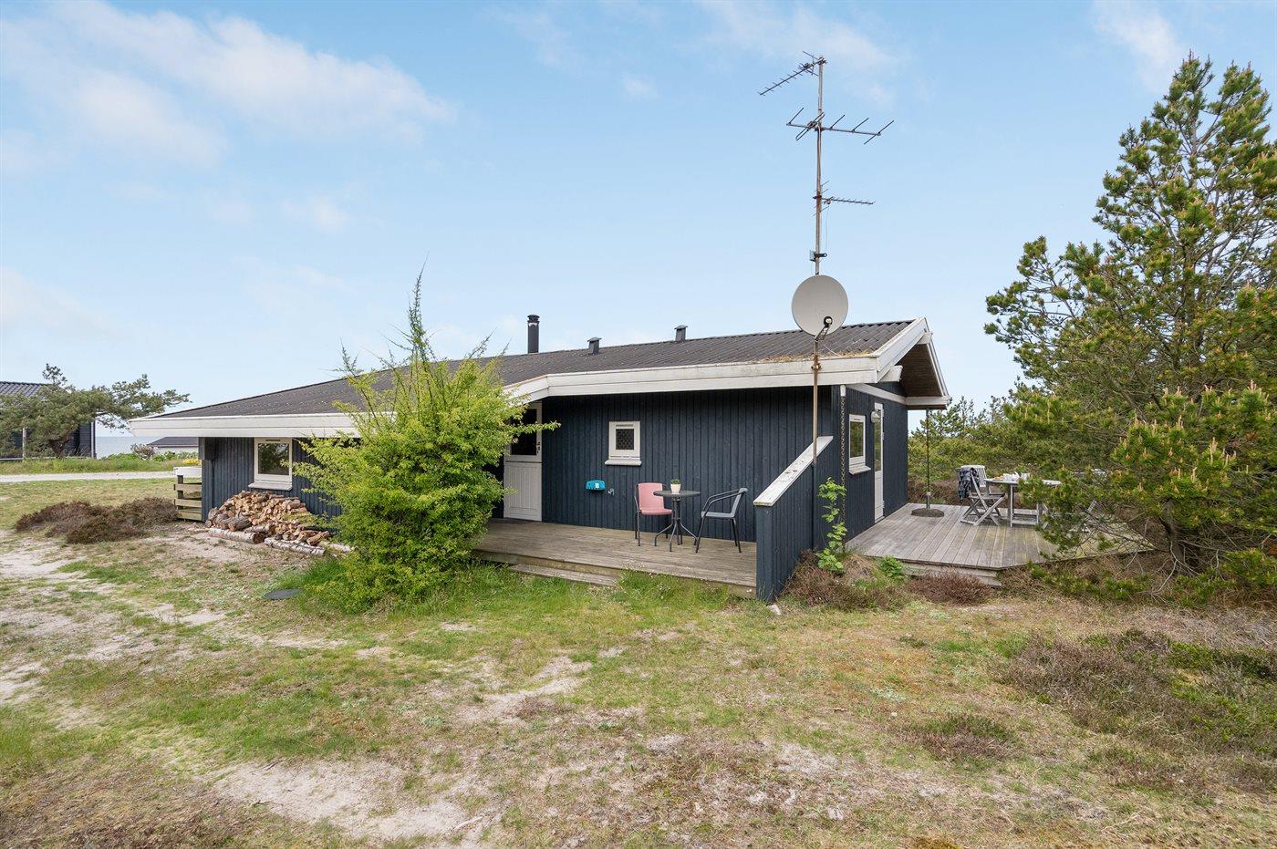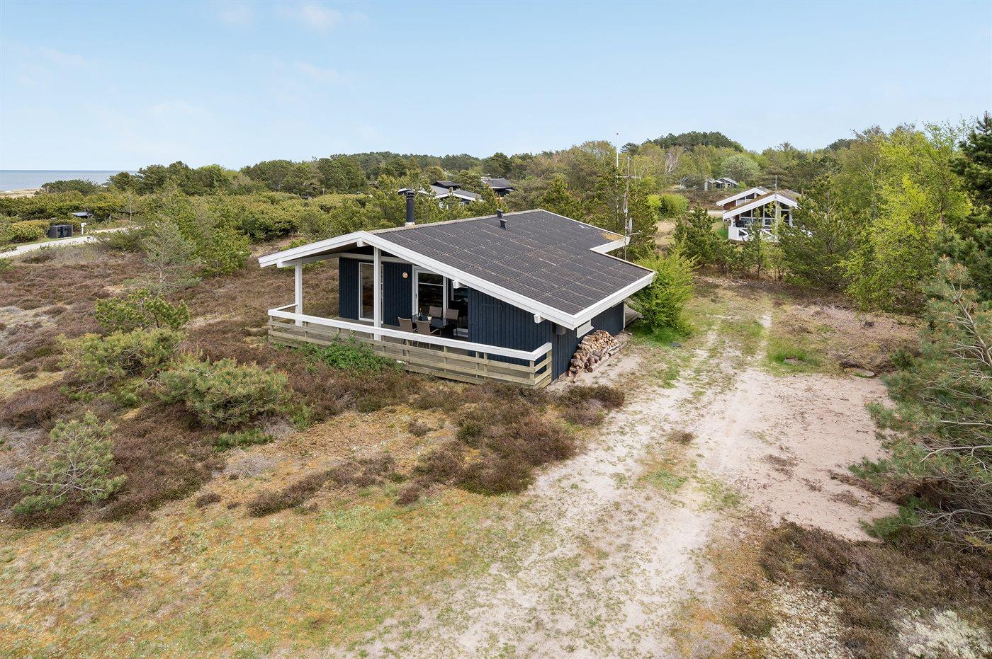 Ferieboligen er beliggende på en 2330 m² stor naturgrund. Der er 150 m til havet. Nærmeste forretning er beliggende i en afstand af 800 m. Til ferieboligen hører 40 m² terrasseareal. Desuden er der 15 m² overdækket terrasse. Parkering ved ferieboligen.