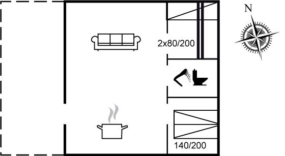 Der er i alt 2 soveværelser. Sovepladserne fordeler sig på: 2 sovepladser i dobbeltseng. 1 soveplads i enkeltseng.1 soveplads i køjeseng.