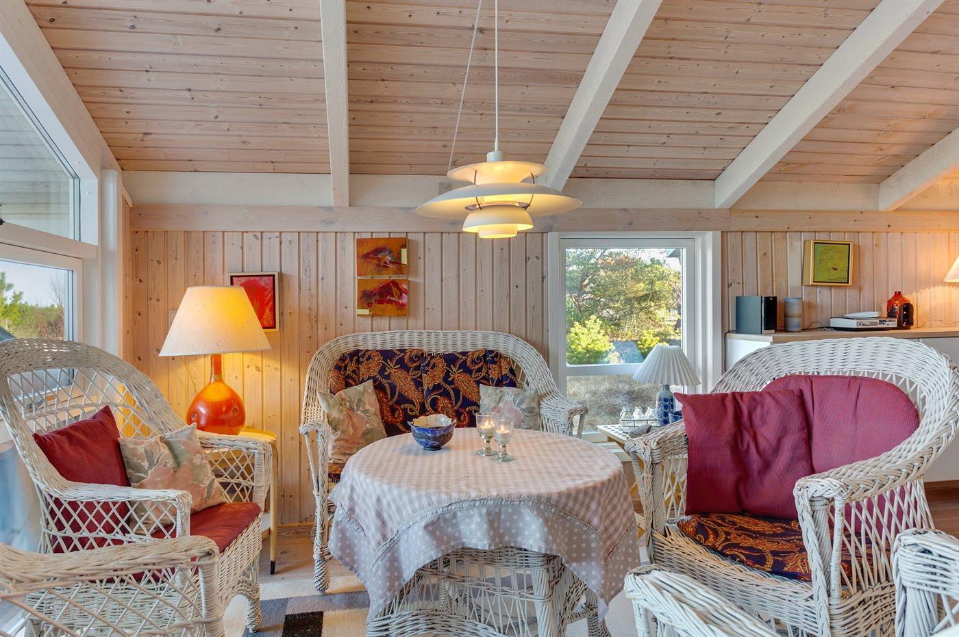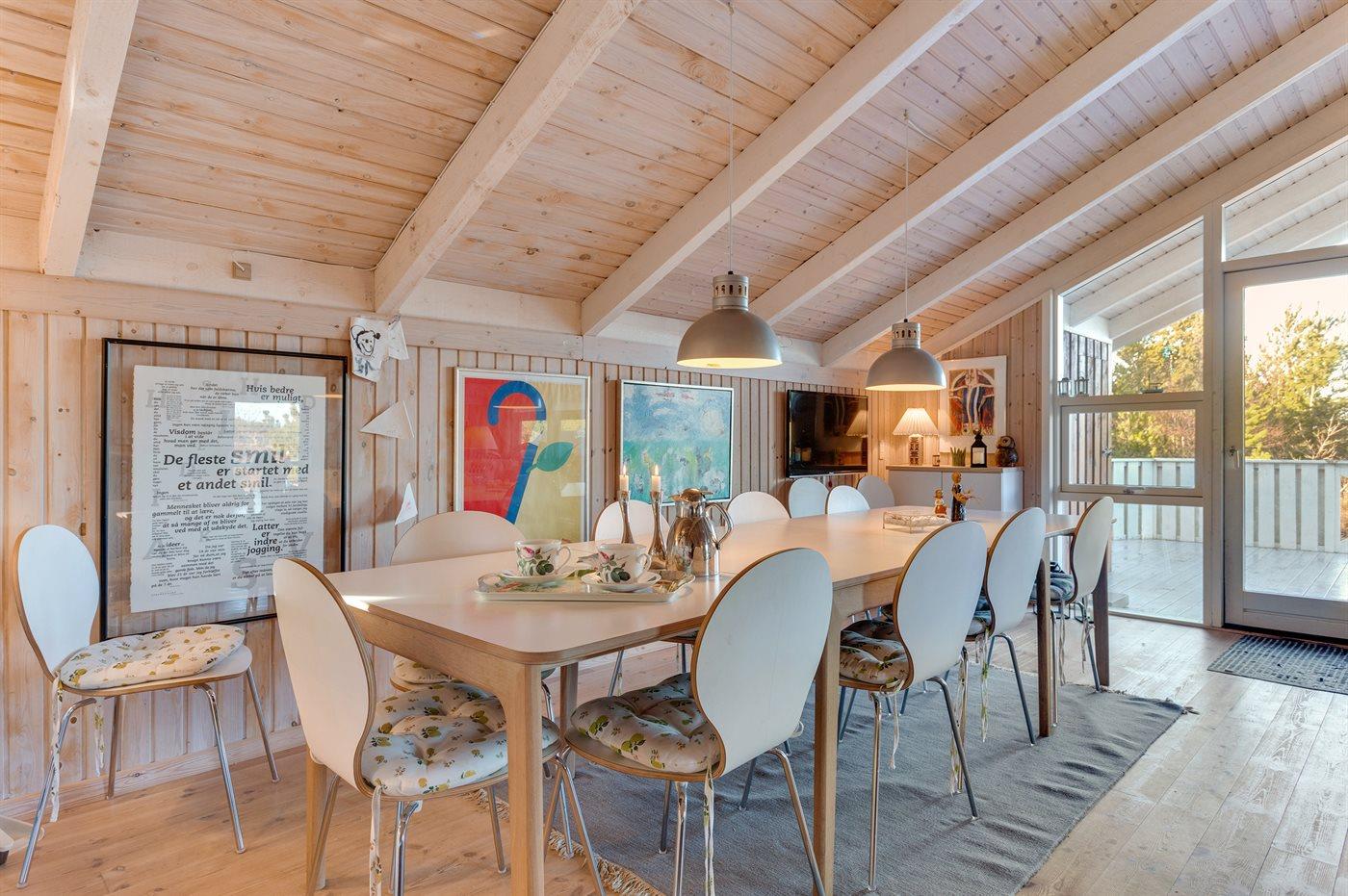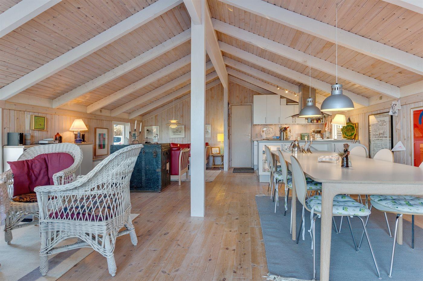 Dejlig lyst og rummeligt sommerhus til den store familie eller flere familier sammen. Annekset er forbundet med huset via en dejlig træterrasse. Her findes 3 værelser samt badeværelse. Huset ligger ugenert og med en fin udsigt over havet. Udendørs findes den skønneste bålplads. Det perfekte hus til afslapning i fredelige omgivelser og alligevel tæt på det hele. En sand oase.