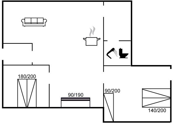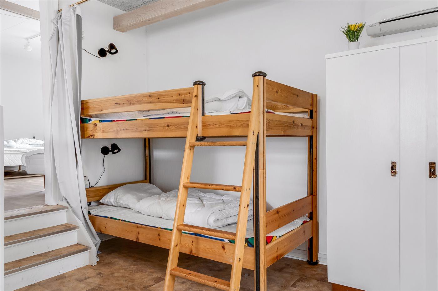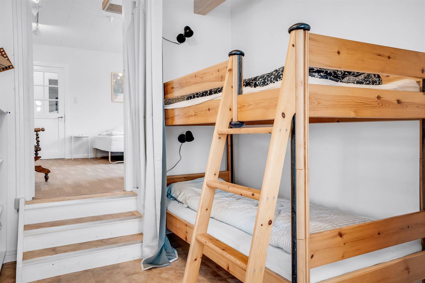 Der er i alt 2 soveværelser. Sovepladserne fordeler sig på: 4 sovepladser i dobbeltsenge. 1 soveplads i enkeltseng. 2 sovepladser i køjeseng. 2 af disse sovepladser befinder sig i stuen.