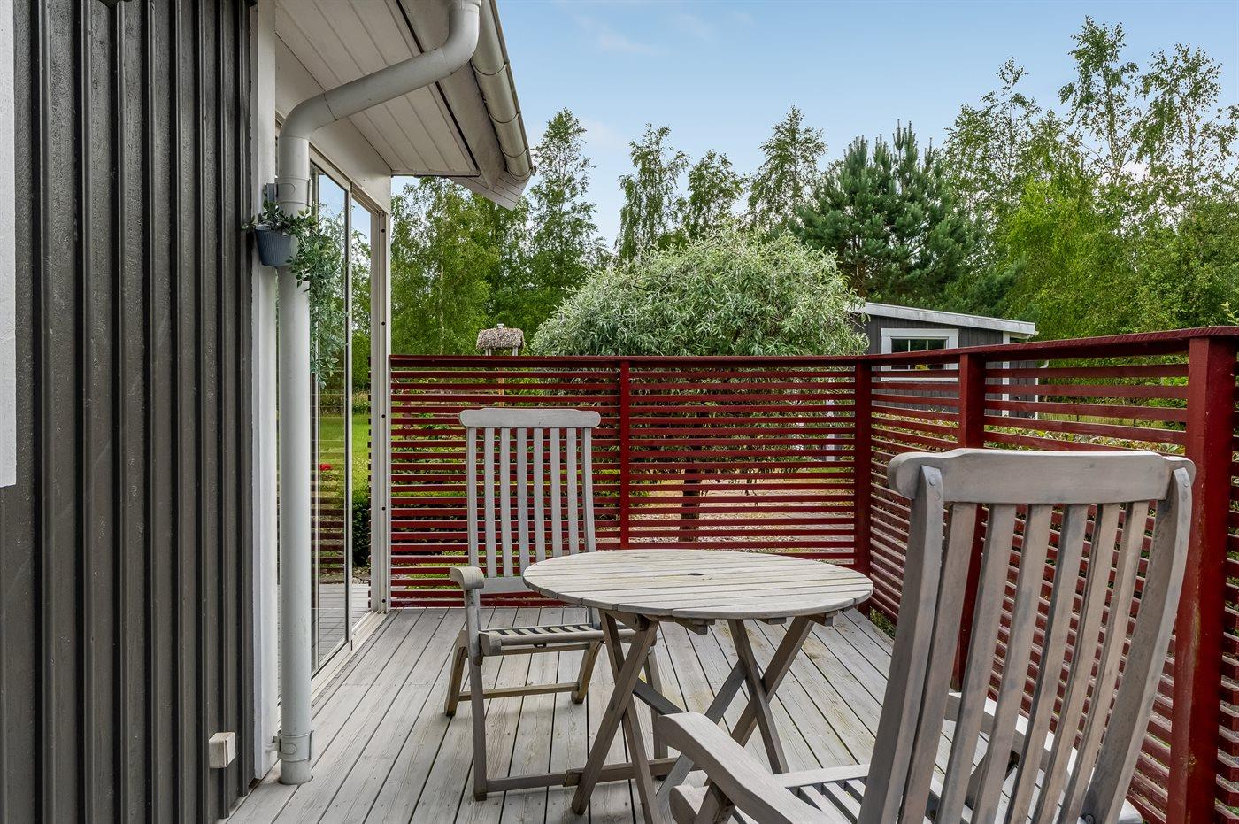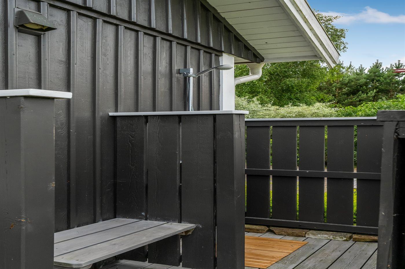 Flere terrasser omkring huset gør det muligt at nyde ferien udendørs. De mange ugenerte lækroge lægger op til alt fra solbadning og afslapning til grillhygge på en lun sommeraften. Der er desuden indrettet et meget fint udendørs brusearrangement, som er helt optimalt at anvende hele sommeren igennem.