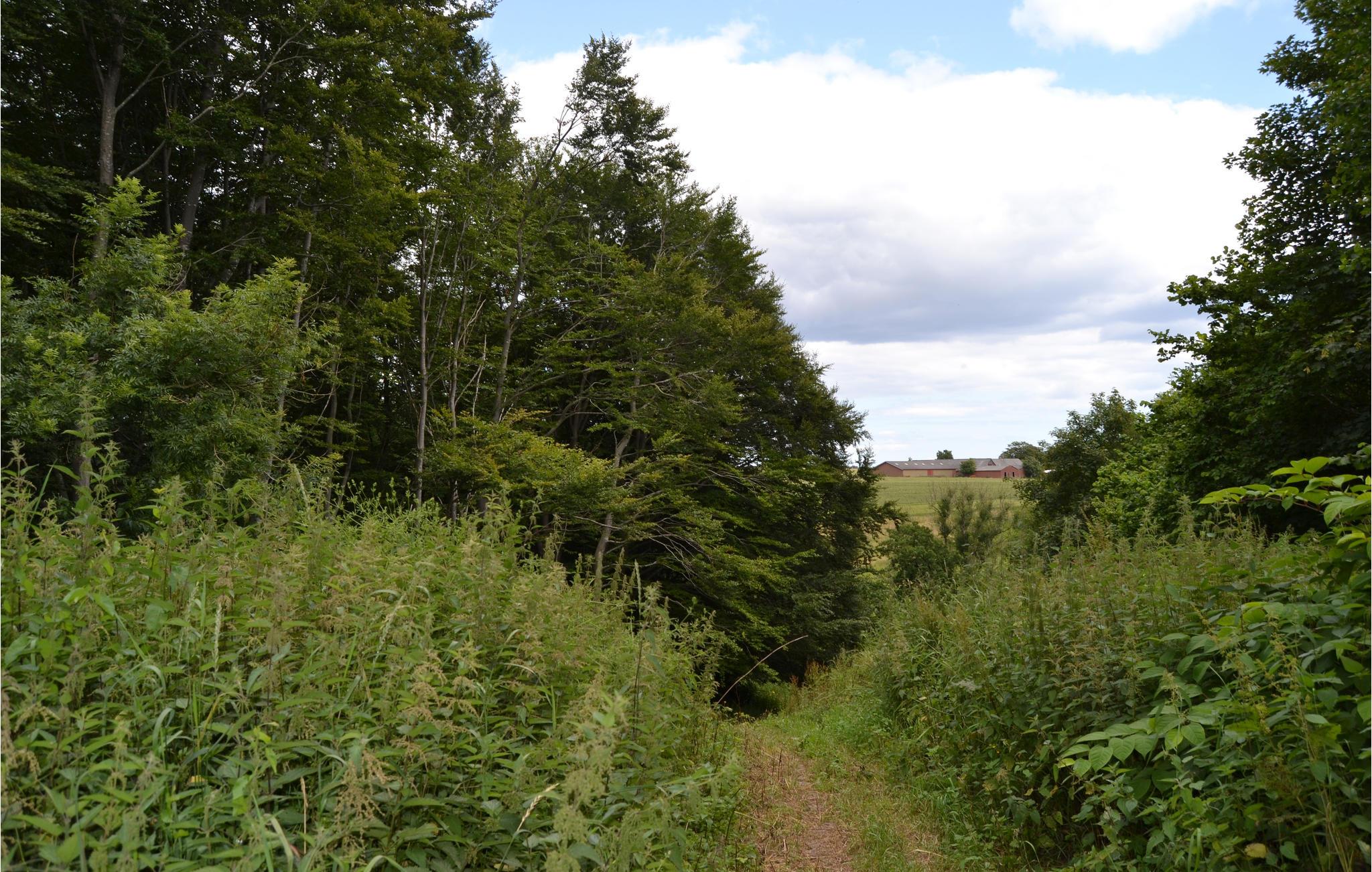 Nedlagt landbrug nær Juelsminde med autentisk indretning og børnevenlig have.